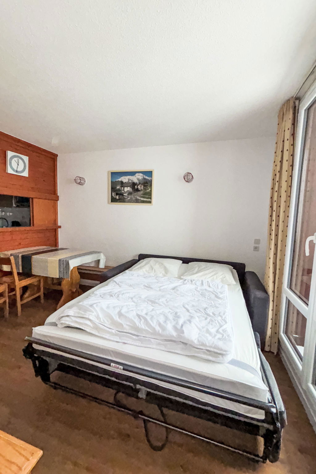 1-room apartment 25 m2 on 3rd floor. Living/dining room with 1 double sofabed (1 x 140 cm, length 190 cm) (2 pers. 2 x 80 cm), TV and flat screen. Sleeping alcove with 1 x 2 bunk beds (80 cm). Kitchenette (4 hot plates, dishwasher, microwave, electric coffee machine). Bathroom, sep. WC. Balcony, south facing position. Terrace furniture. Facilities: Internet (WiFi, extra). Please note: non-smokers only. Smoke alarm. Instead of an enclosed bedroom, some sleeping areas are located in an open-plan area (gallery, alcove, etc.).