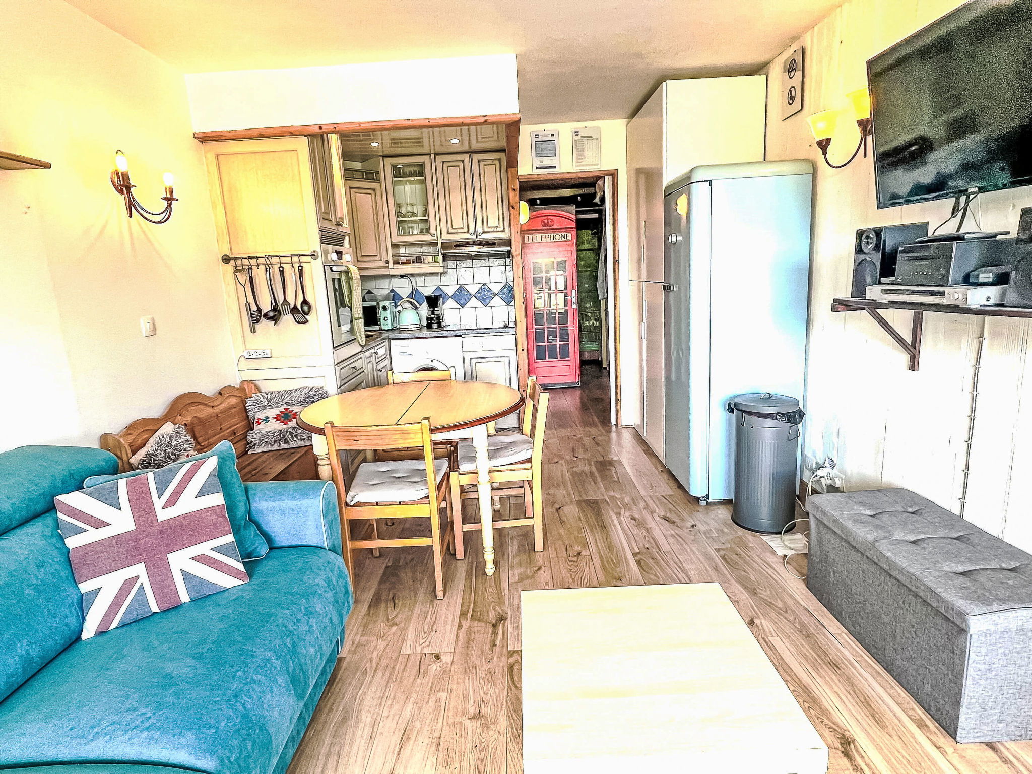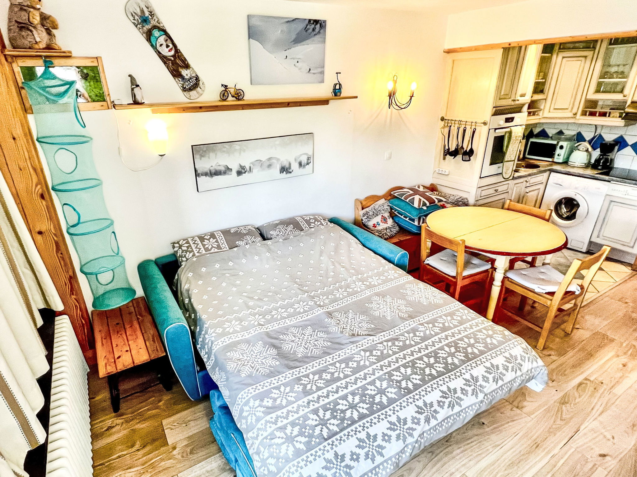 1-room studio 28 m2 on 1st floor. Bright, fully renovated: living/dining room with 1 double sofabed (1 x 140 cm, length 190 cm), TV (flat screen), hi-fi system and DVD. Exit to the balcony. Entrance hall with 1 x 2 bunk beds (80 cm). Open kitchen (oven, dishwasher, 4 ceramic glass hob hotplates, microwave, electric coffee machine). Bathroom, sep. WC. North-east facing position. Very beautiful panoramic view of the lake and the mountains. Facilities: washing machine. Internet (WiFi, free). Please note: suitable for families. Fridge without freezer, non-smokers only. Smoke alarm. HIFI with MP3 player and large fridge 220 liters.