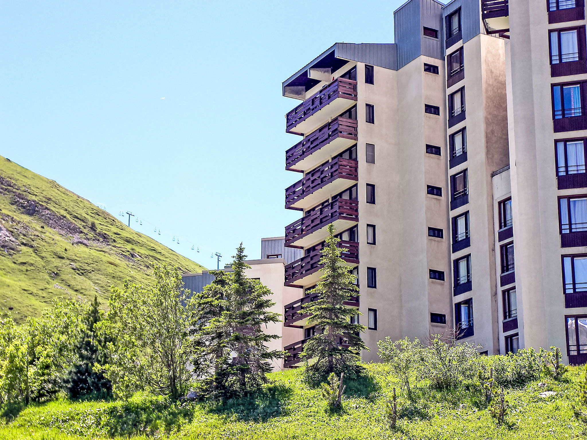 Tignes Val Claret: Residence "Le Slalom (Val Claret)". 2 km from the lake, 300 m from the skiing area. In the complex: lift, storage room for skis, central heating system. Public car park at 100 m, extra. Supermarket, shopping centre 100 m, restaurant 150 m, 2 minute walk to the centre, bus stop 200 m, indoor swimming pool 1.5 km. Sports centre 800 m, skisport facilities 300 m, slopes 500 m, ski bus stop 200 m. Nearby attractions: cinèma à 50m. Well-known ski regions can easily be reached: Espace Killy 300 km de pistes. Hiking paths: Tarentaise. Please note: ski bus (free of charge).