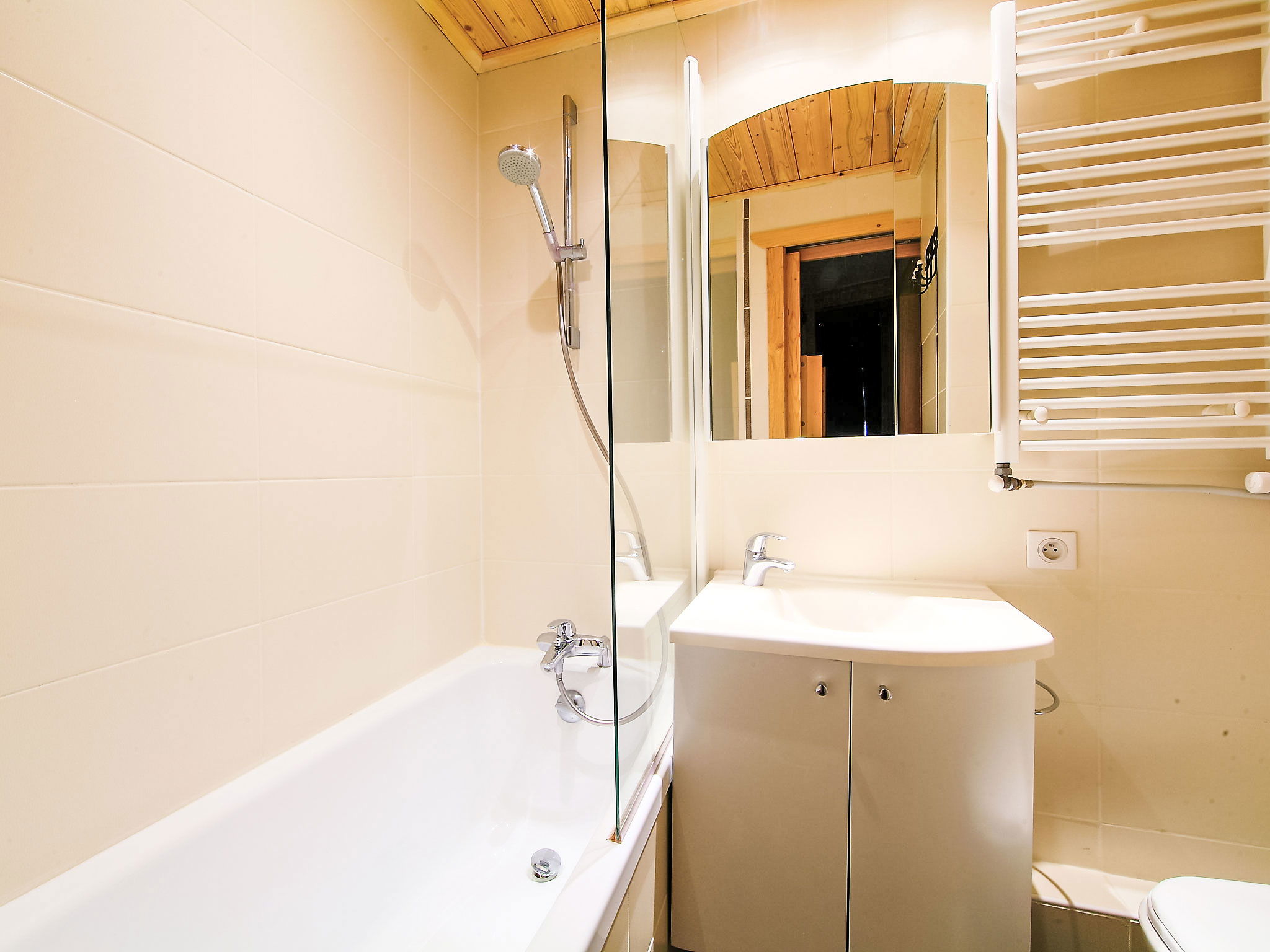 1-room apartment 27 m2, on the ground floor. Fully renovated, beautiful and wooden furniture furnishings: living/dining room with 1 pull-out bed (2 pers. 2 x 80 cm), cable TV (flat screen). Entrance hall with 1 x 2 bunk beds (80 cm). Kitchenette (2 hot plates, dishwasher, microwave). Bath/WC. Small terrace, south facing position. Facilities: Internet (WiFi, free). Please note: smoke alarm. dry electric ski boots.
