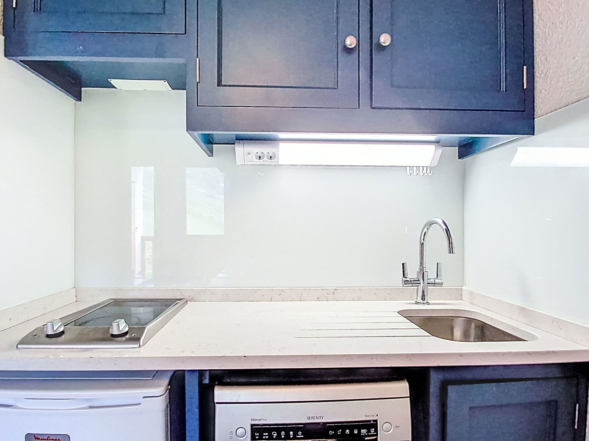 2-room apartment 33 m2 on 1st floor. Living/dining room. 1 room with 1 french bed (140 cm). Sleeping alcove, without window with 1 x 2 bunk beds (80 cm). Kitchenette (2 hot plates, mini-oven, dishwasher, microwave). Bathroom, sep. WC. Electric heating. Balcony, south-west facing position. Beautiful view of the lake and the mountains. Facilities: Internet (WiFi, free). Please note: non-smokers only. Instead of an enclosed bedroom, some sleeping areas are located in an open-plan area (gallery, alcove, etc.).