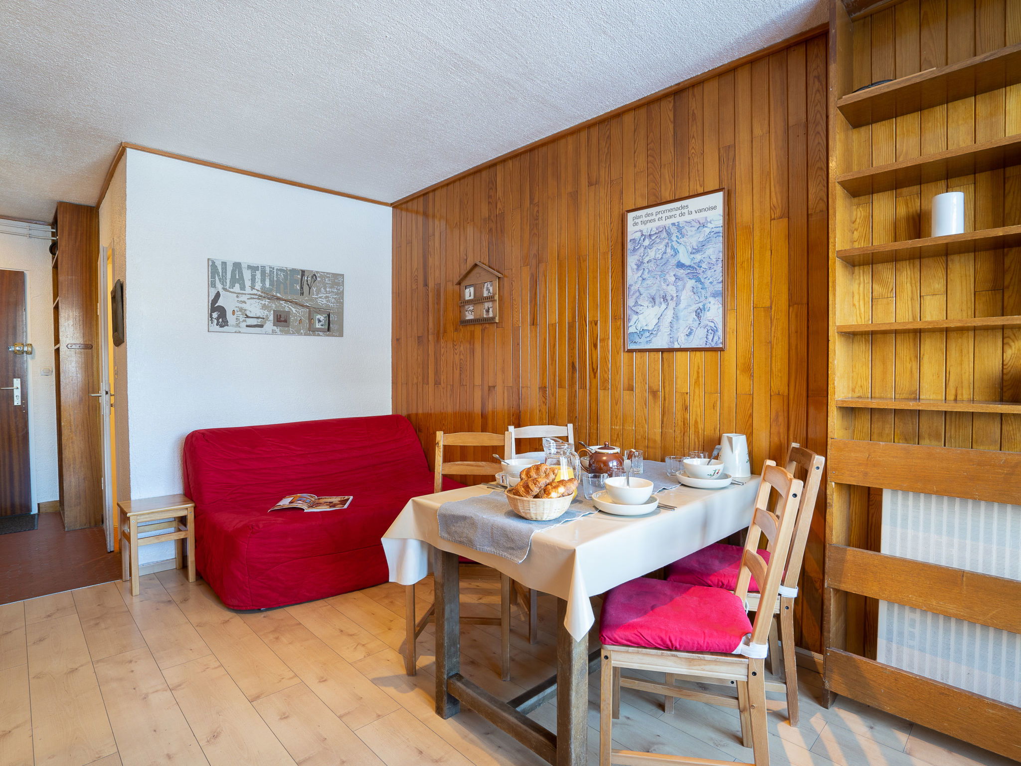 1-room studio 24 m2 on 1st floor. Simple and practical furnishings: living/dining room with 1 double sofabed (140 cm), 1 pull-out bed (2 pers. 2 x 80 cm), TV (flat screen). Exit to the balcony, north-east facing position. Kitchenette (2 hot plates, microwave). Bath/bidet/WC. Beautiful view of the mountains, the countryside and the resort. Facilities: Internet (WiFi, extra). Please note: non-smokers only. Smoke alarm.
