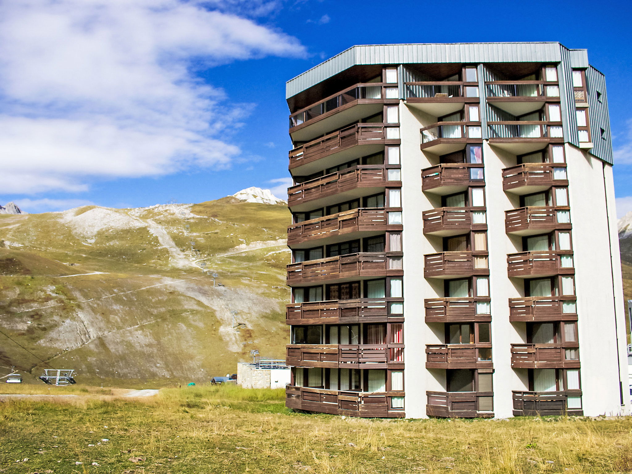 Tignes Val Claret: Residence "Le Prariond" - excellent location: central but quiet, right by the Tignes and Val d'Isère slopes, ski in ski out. Residence "Le Borsat (Val Claret)", 7 storeys. In the centre, in a sunny position in the residential district, 20 m from the skiing area. In the complex: lift, storage room for skis, central heating system. Shop 50 m, supermarket 500 m, restaurant 50 m, bus stop 500 m, indoor swimming pool 2 km. Skisport facilities 20 m, slopes 20 m, ski rental 50 m, ski bus stop 200 m, ski school 150 m, children's ski school 20 m, sled run 150 m. Nearby attractions: centre aquatique Le Lagon 2 km, Centre Sportif Tignespace 2 km. Well-known ski regions can easily be reached: Espace Tignes Val D'isère 10 m. Hiking paths: Parc Naturel Régional de la Vanoise 250 m. Please note: ski bus (free of charge).