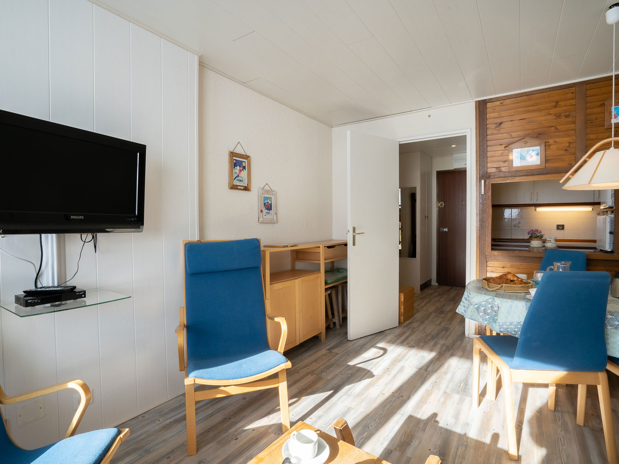 2-room apartment 35 m2 on 4th floor. Comfortable and beautiful furnishings: living/dining room with 1 pull-out bed (2 pers. 2 x 80 cm), TV. Exit to the balcony, south facing position. 1 room with 1 french bed (140 cm, length 190 cm). Kitchenette (mini-oven, dishwasher, 4 induction hot plates, microwave, electric coffee machine). Bathroom, sep. WC. Balcony 8 m2, south facing position. Balcony furniture. Very beautiful panoramic view of the mountains and the ski run. Facilities: Internet (WiFi, extra). Please note: non-smokers only. Smoke alarm. Offer by a private individual according to Art. 155, IV of CGI.