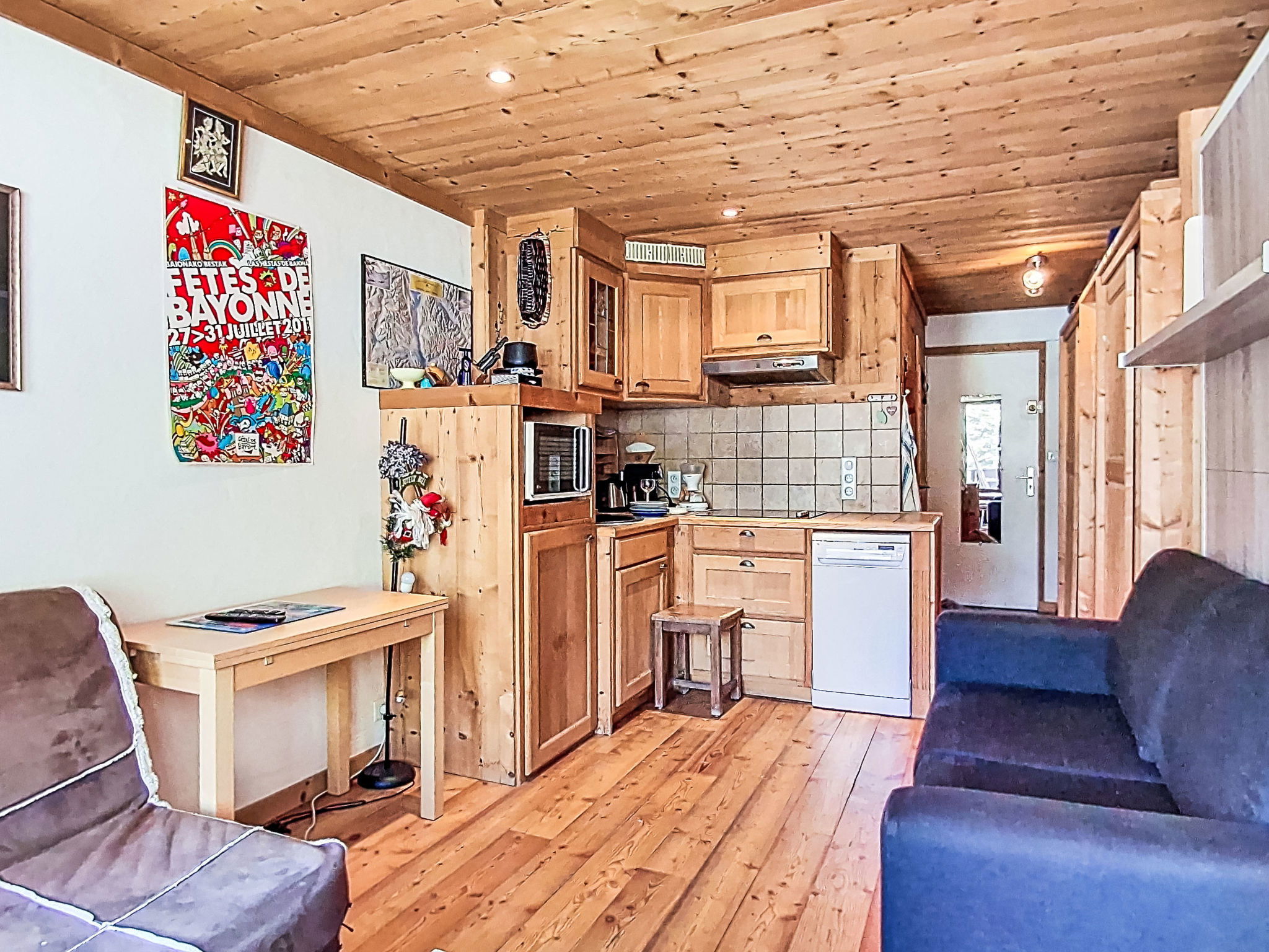 1-room studio 25 m2 on 2nd floor, south-east facing position. Wooden furniture furnishings: living/dining room with 1 sofabed (140 cm, length 190 cm), TV (flat screen). Exit to the balcony, south-east facing position. Open kitchen (dishwasher, 4 ceramic glass hob hotplates, toaster, kettle, microwave, electric coffee machine, Capsules for coffee machine (Nespresso) extra, fondue Set (cheese)). Bath/WC. Balcony furniture. View of the countryside. Please note: non-smokers only. Smoke alarm. Offer by a private individual according to Art. 155, IV of CGI.