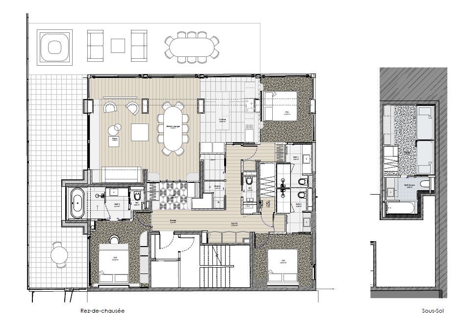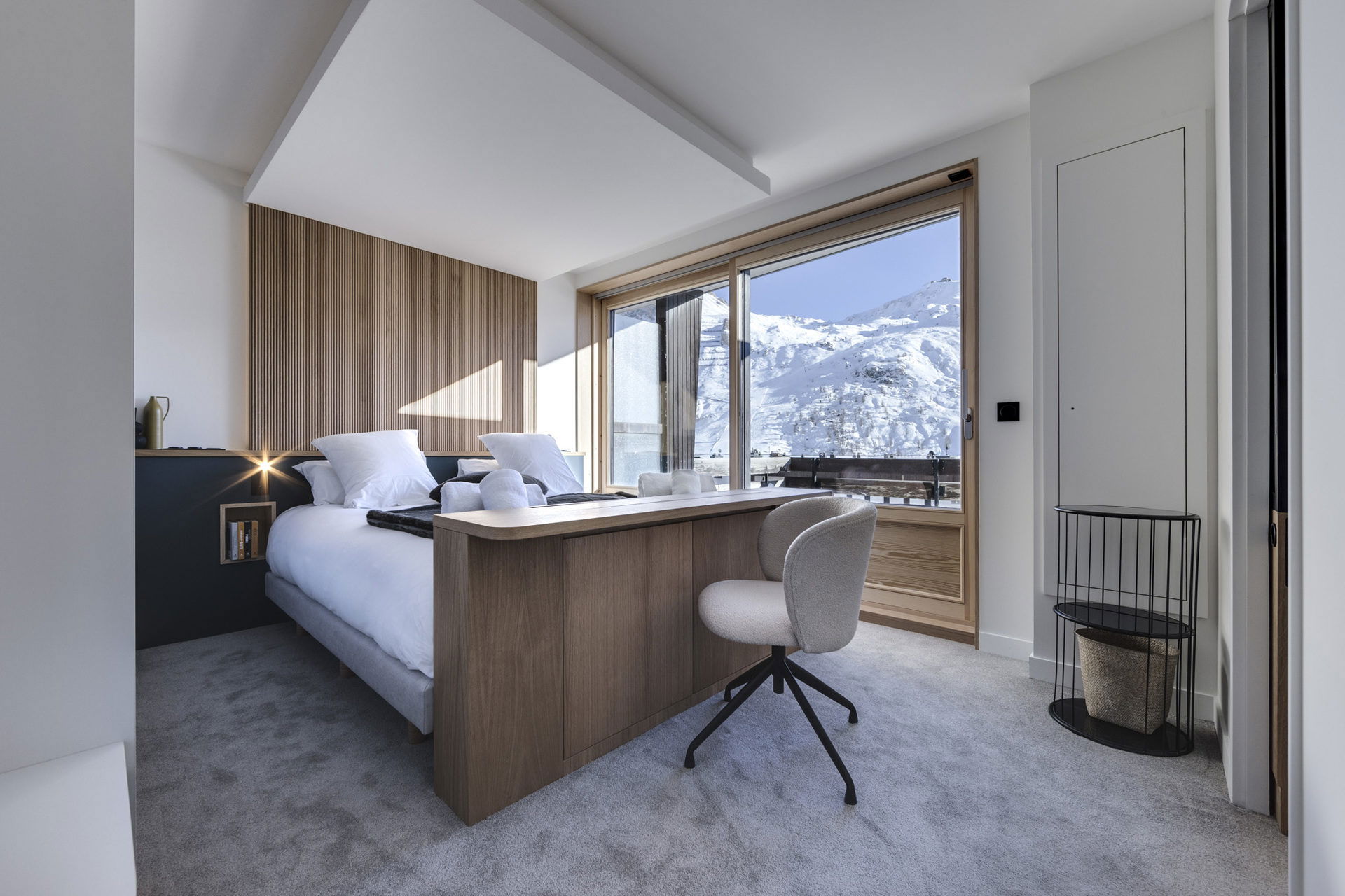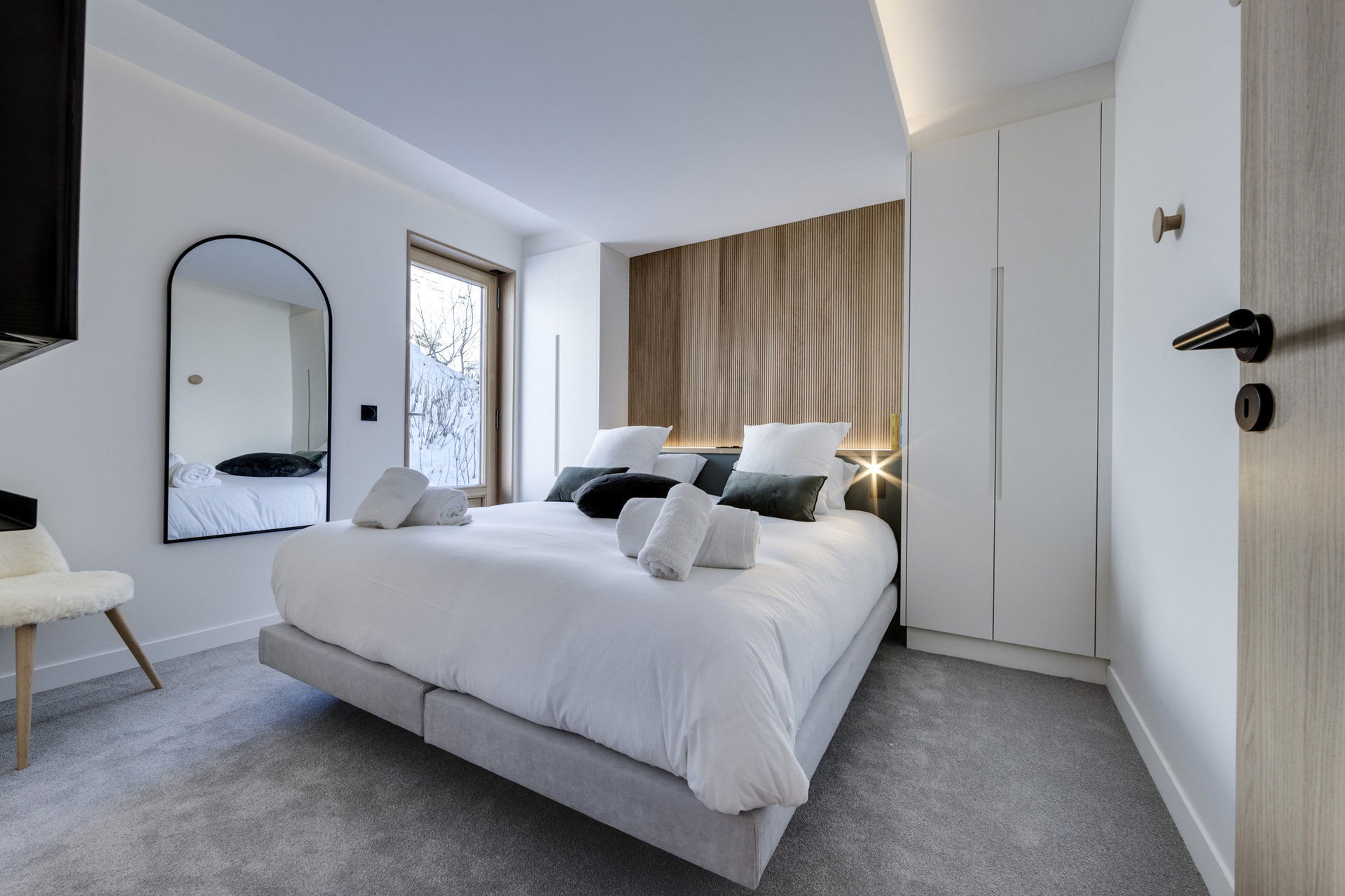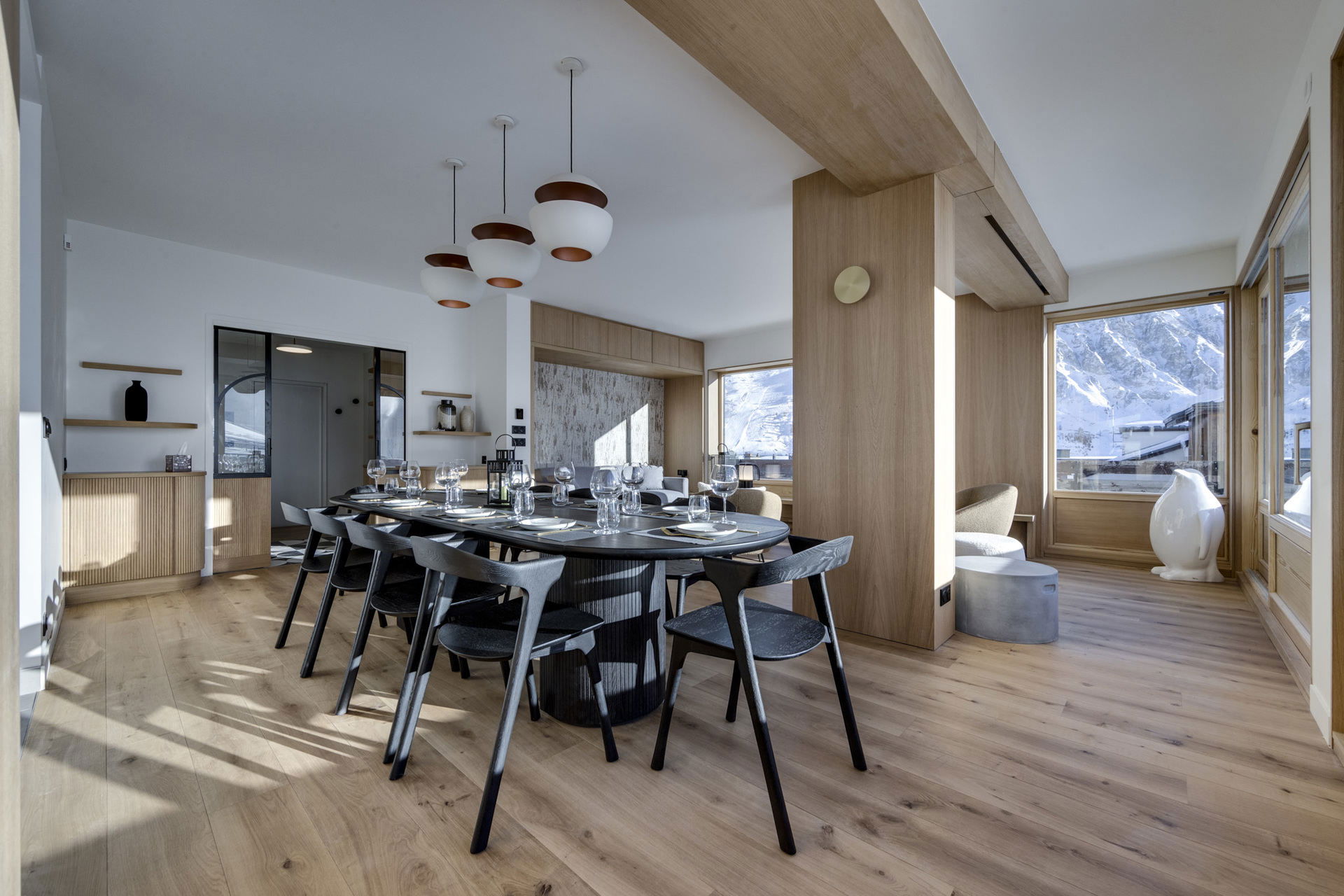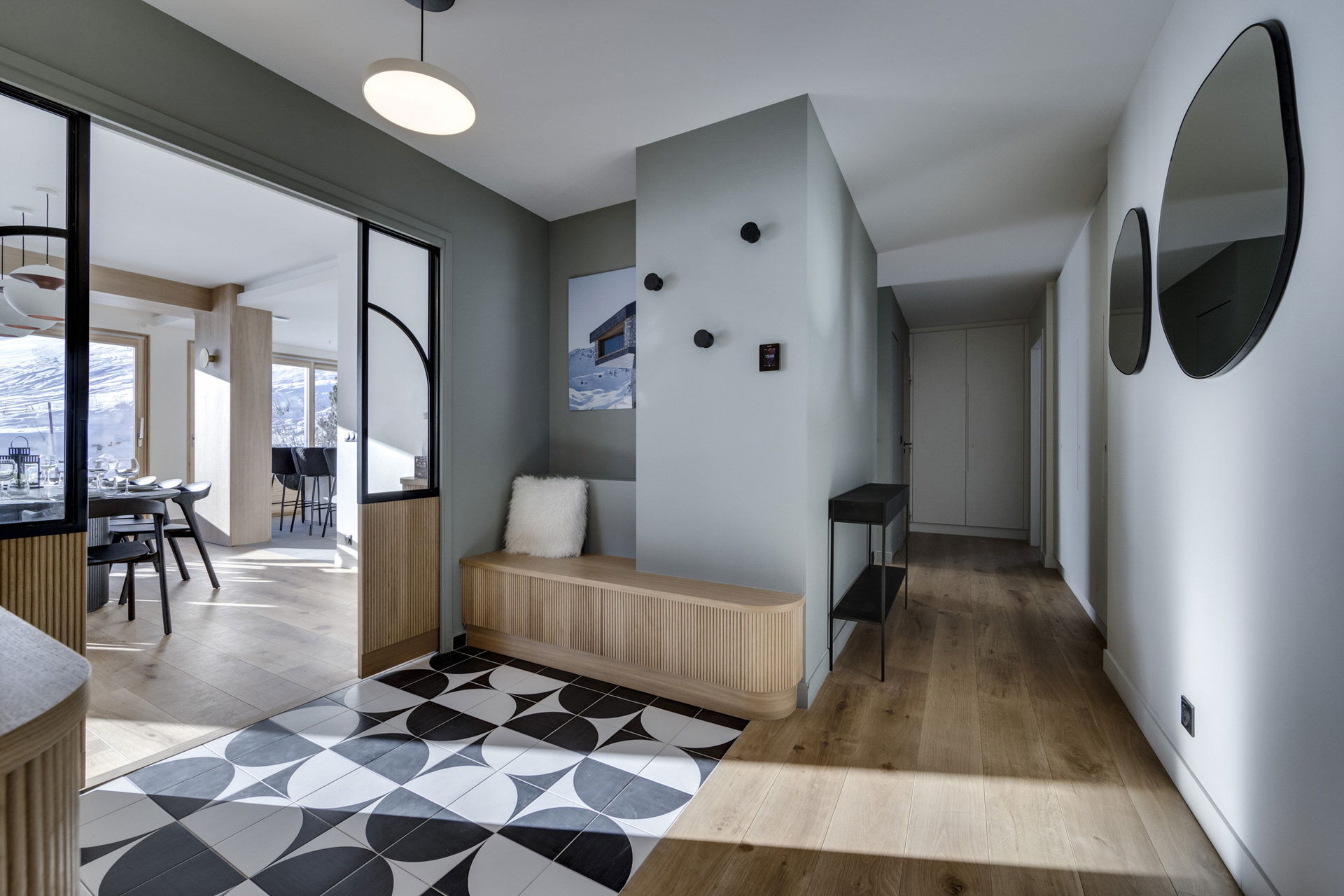 The flat La Lanterne has been completely renovated and decorated with great style. Facing south-west, the apartment benefits from a lot of light thanks to its numerous openings to the outside. It is located on the ground floor of the Le Bec Rouge building and has a magnificent view of the slopes.