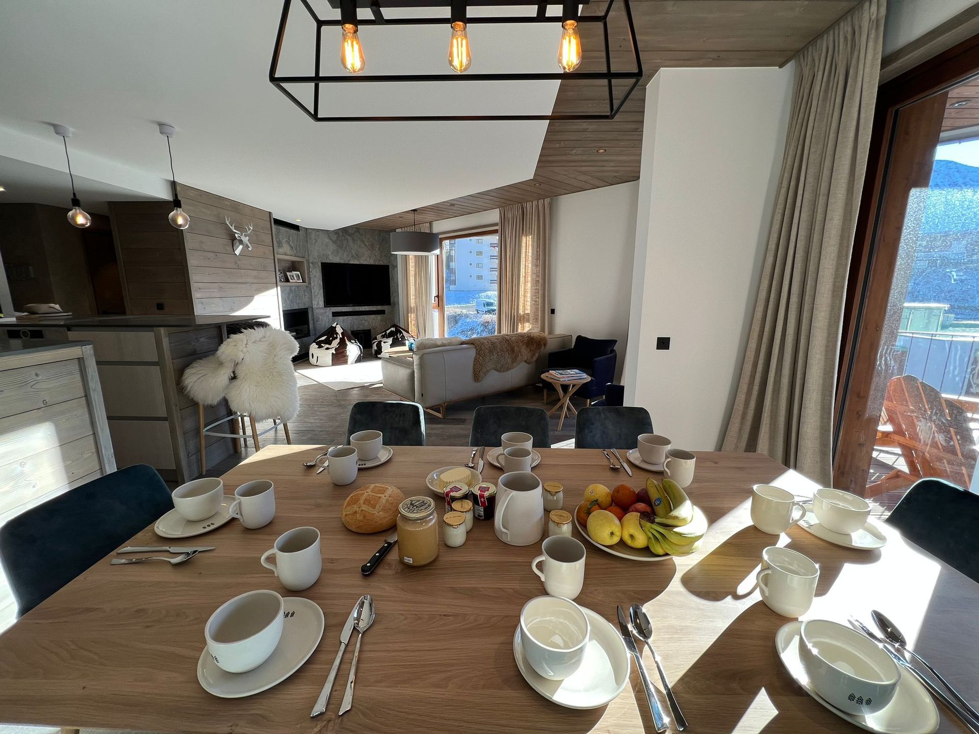 Luxury, space, comfort and well-being are the key words to describe this sublime apartment of 120m², completely brand new in the heart of Lavachet. There are 4 bedrooms offering a capacity of 8 people. Perched on the top floor of les Trolles residence, the apartment boasts plentiful natural light thanks to its floor to celing windows and of course has some fabulous views over Lavachet, towards Tignes le lac and the mountains beyond. Relax and admire those views from the large south-west facing terrace, or unwind from the comfort of the living room sofa, gaze out of the windows and..breathe. This really is the perfect place to enjoy your ski holiday with family or friends. The modern well equipped kitchen will delight those who like to stay in and cook, or if drinks & nibbles are more your style, the space is open plan, ensuring maximum socialising between the kitchen, dining and living area. The residence is within easy walking distance to the local Lavachet stores, free shuttle bus stop and local pistes (Lavachet piste, button lift, Chaudannes & Pacquis chairlifts). There are also some great restaurants nearby to discover if the chef wants a night or two off !