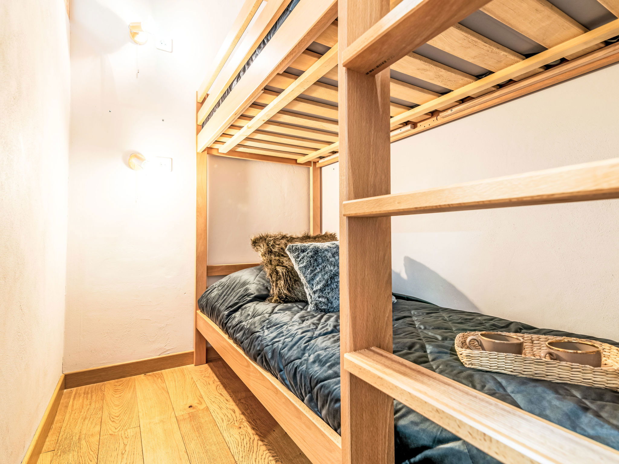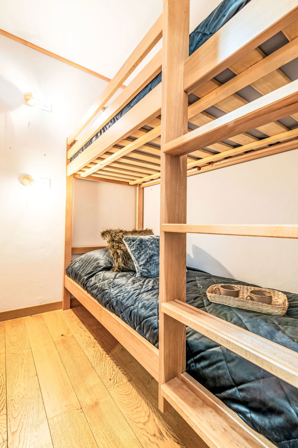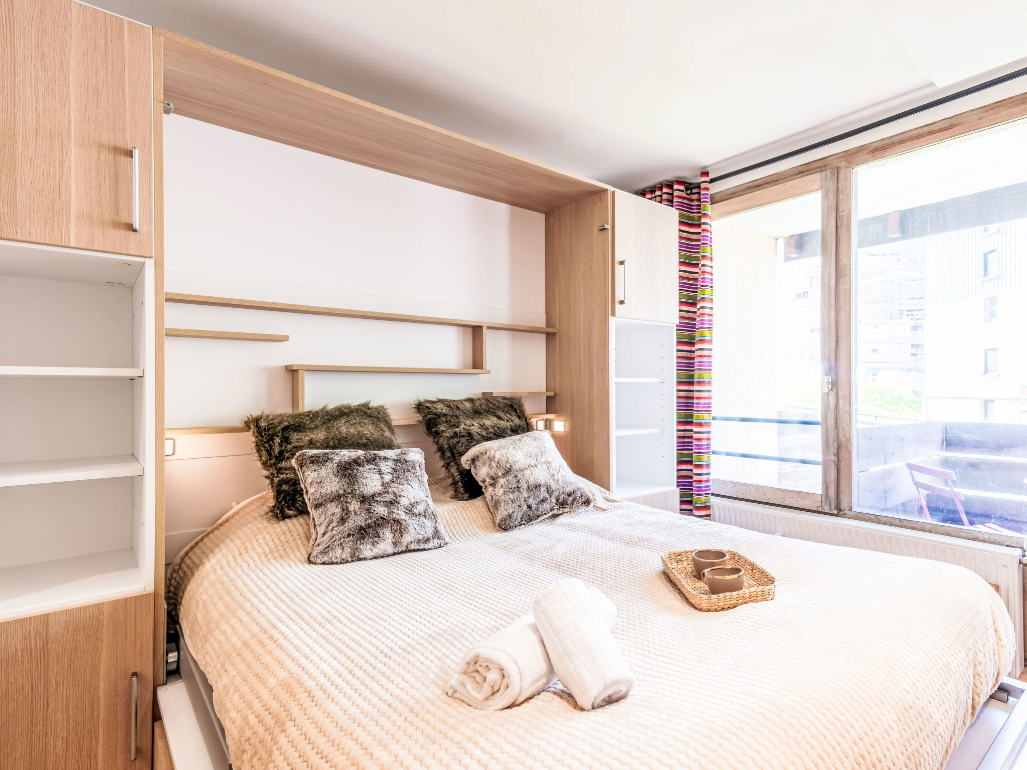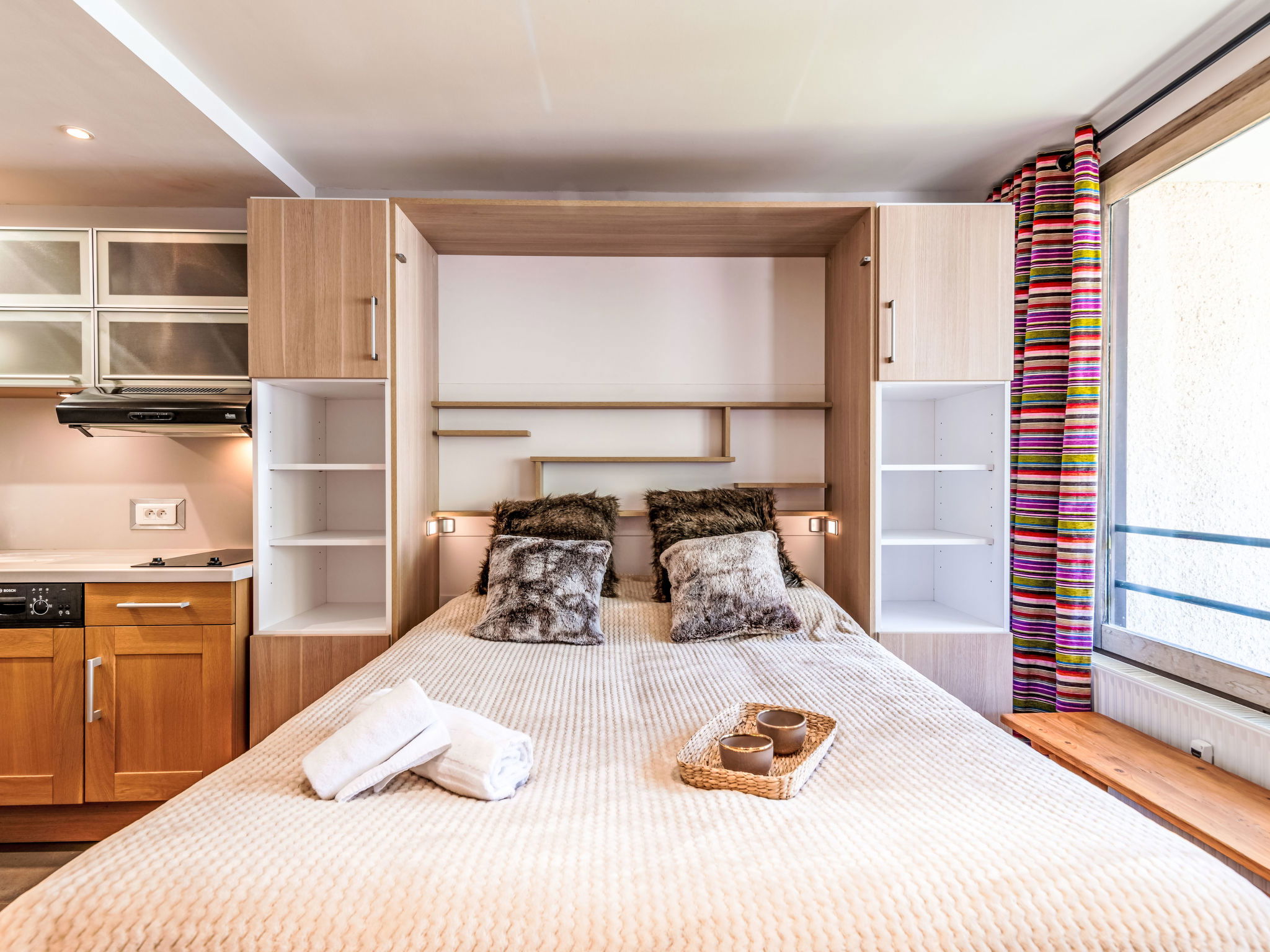 2-room studio 20 m2 on 4th floor. Renovated, comfortable and beautiful furnishings: living/dining room with 1 double wall-trunk bed (140 cm, length 190 cm), TV (flat screen). Exit to the balcony, south facing position. Sleeping alcove with 1 x 2 bunk beds (80 cm, length 190 cm). Open kitchen (oven, dishwasher, 2 ceramic glass hob hotplates, toaster, kettle, electric coffee machine). Shower/WC. Oil heating. Small balcony 3 m2, south facing position. Balcony furniture. Facilities: Internet (WiFi, free). Please note: suitable for families. Non-smokers only. Smoke alarm.