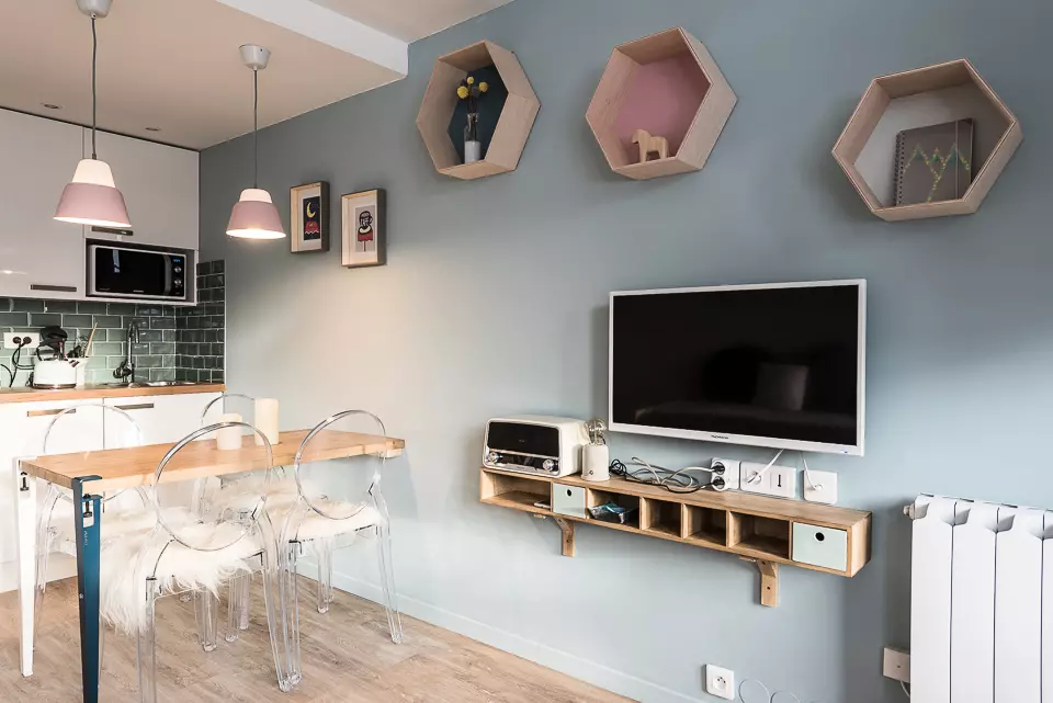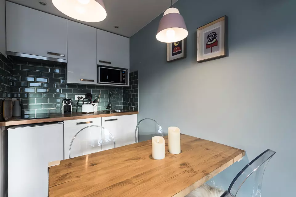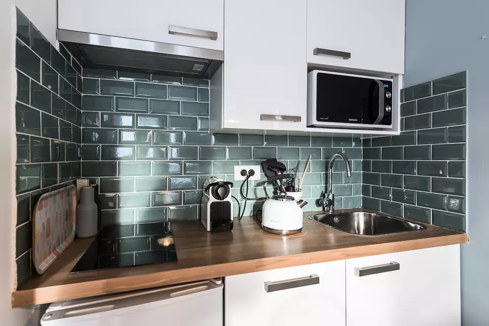 Kitchenette equipped with electric hotplates, microwave and dishwasher