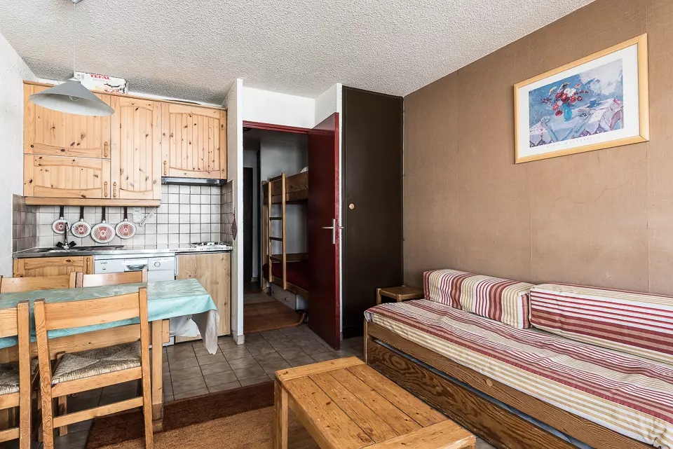 24m² studio equipped for 4 people and located on the 2nd floor with elevator of the residence "Le Home Club", in Tignes Le Lavachet.