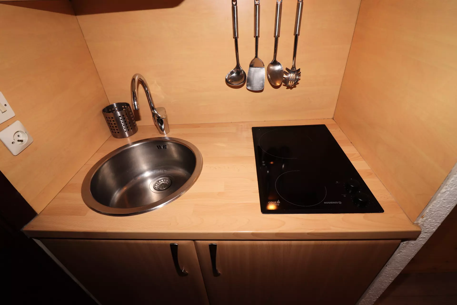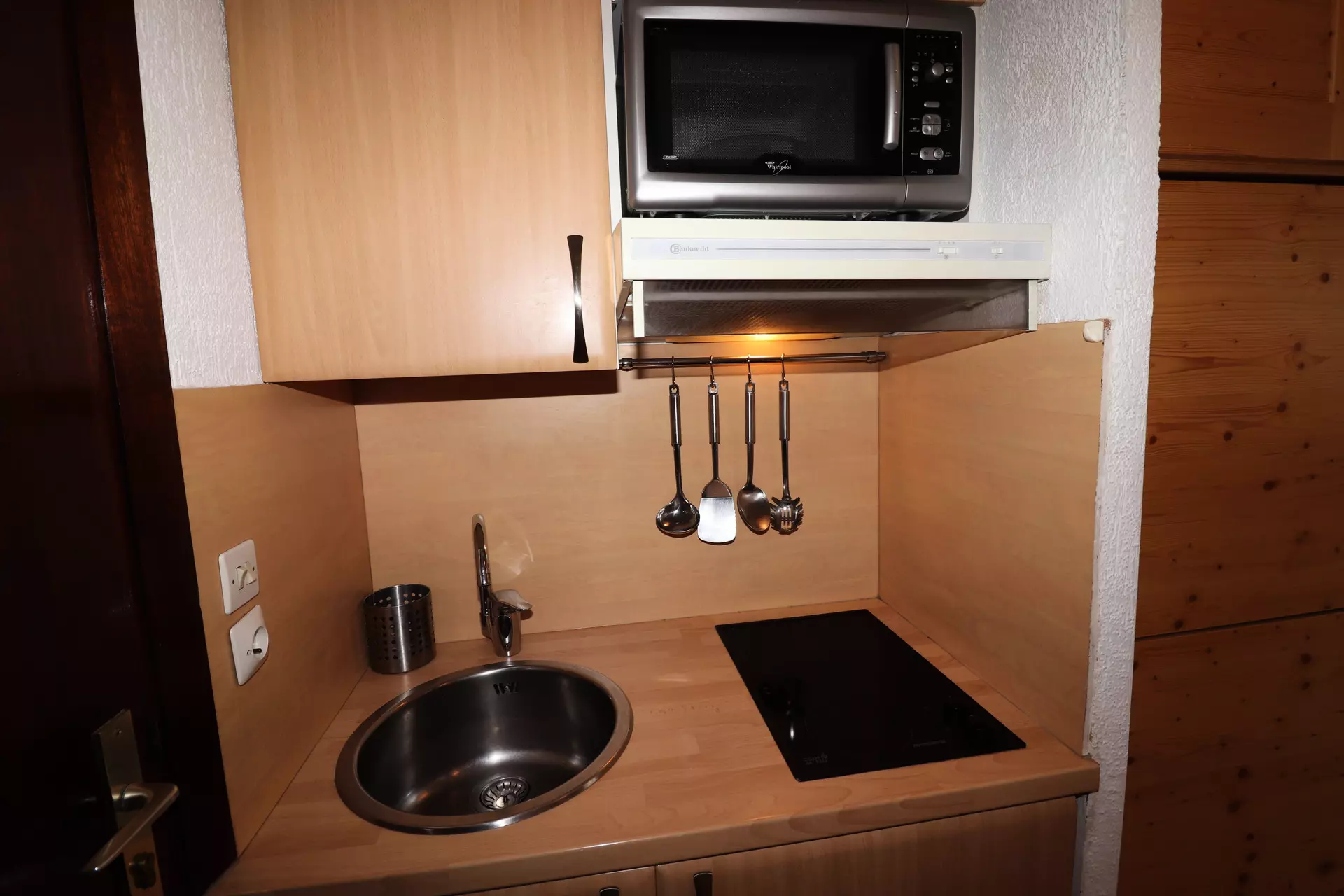 Equipped kitchen with electric hob, microwave