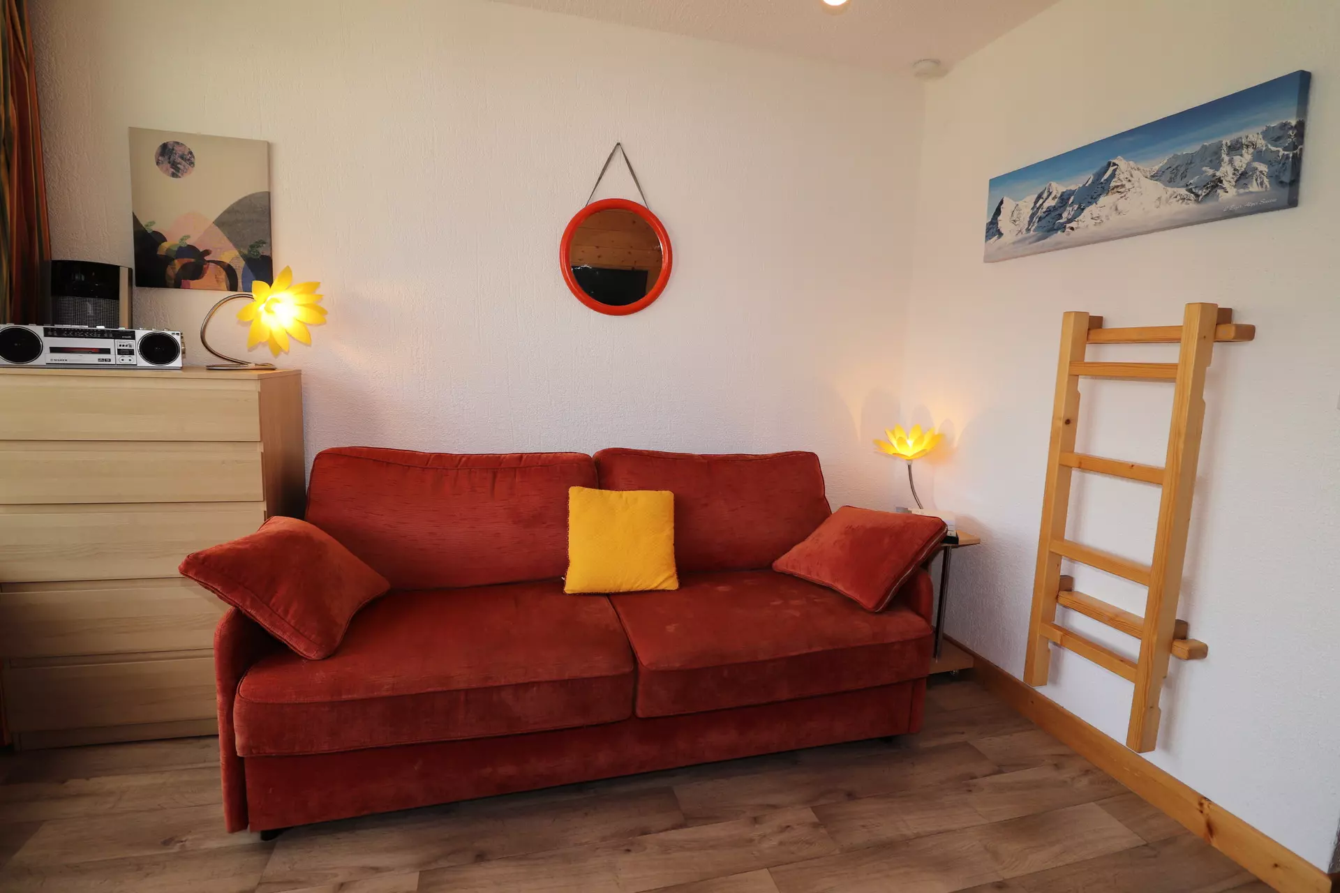Living room with a sofa bed (double bed) and television