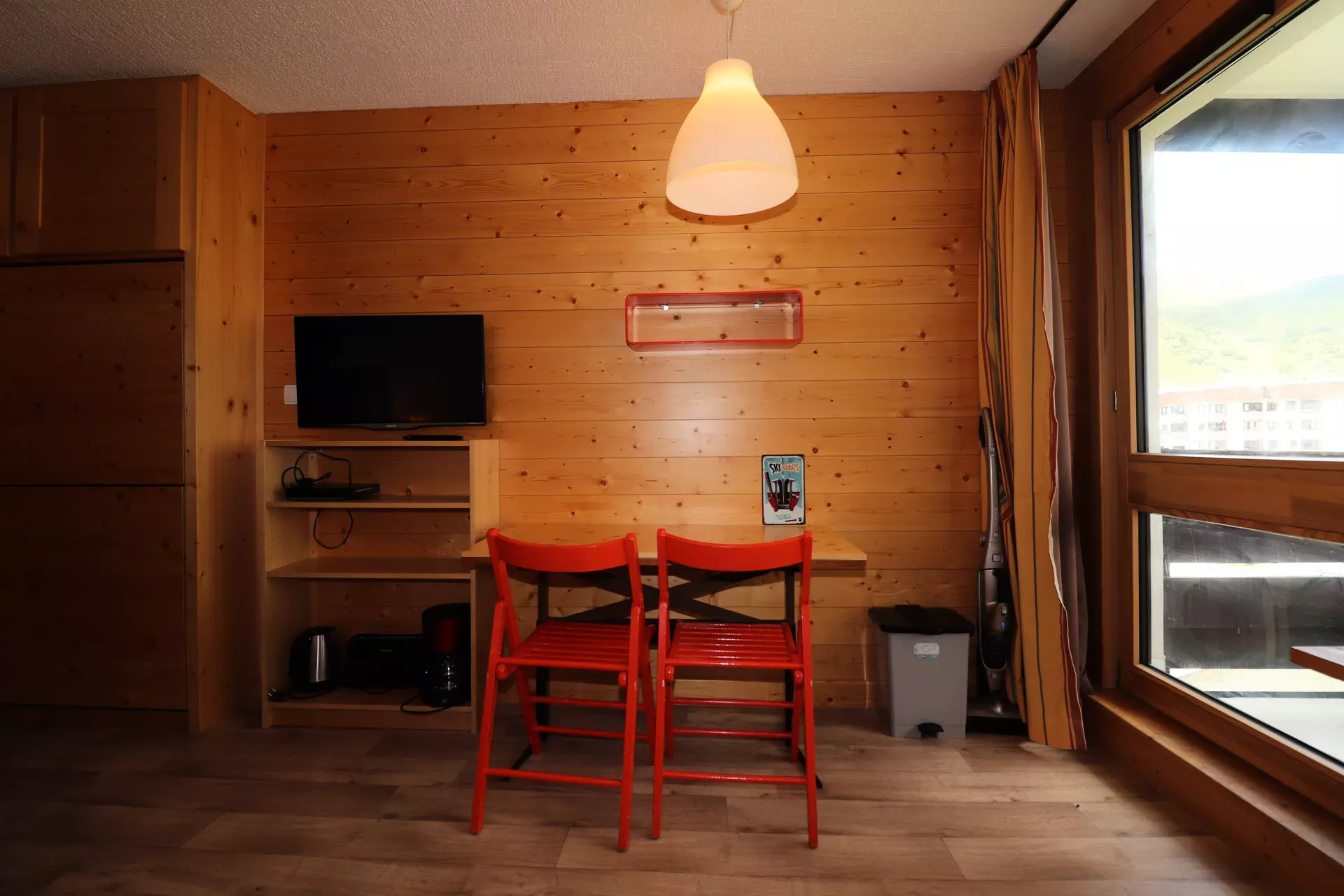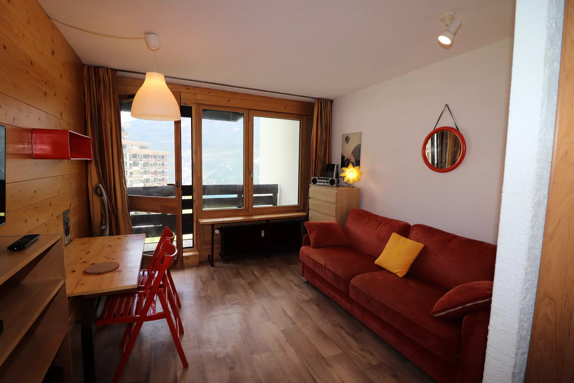 Renovated 19m² studio apartment, equipped for 2 people, located on the 4th floor with elevator in the "La Tour du Lac" residence in Tignes le Lavachet. Ski-in ski-out and shops nearby.