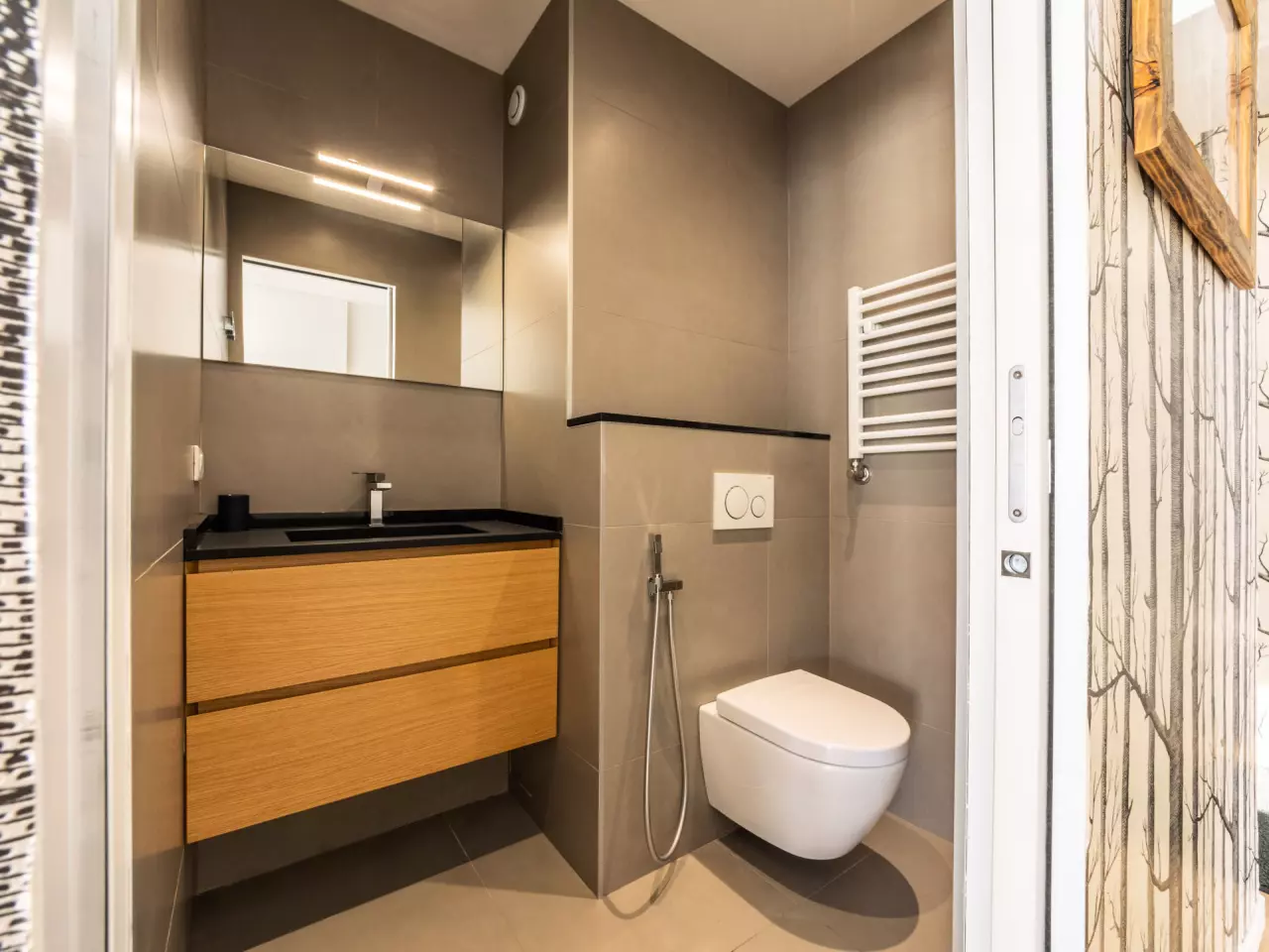 Double living room with convertible space into a bedroom with a double sofa bed and TV