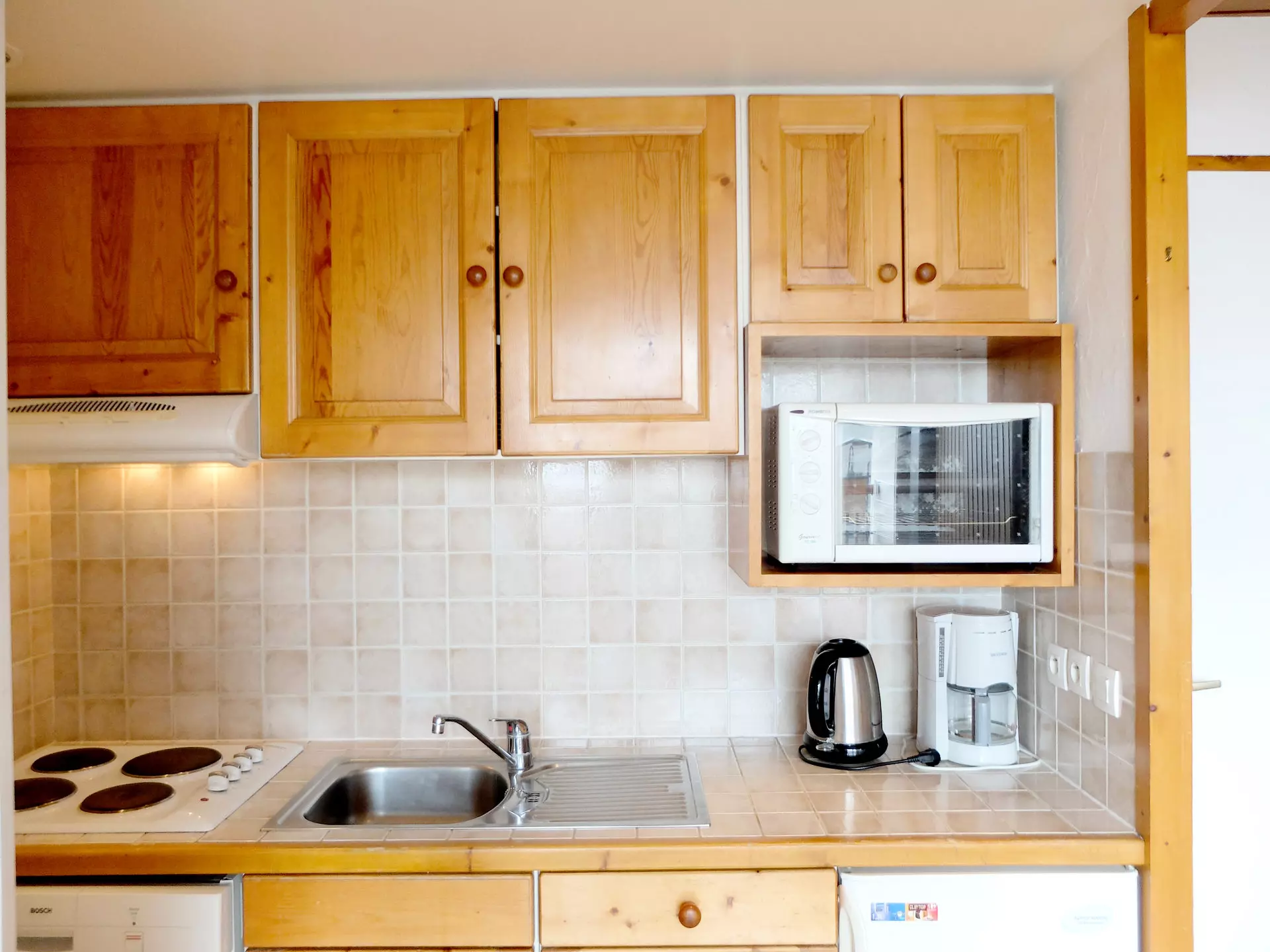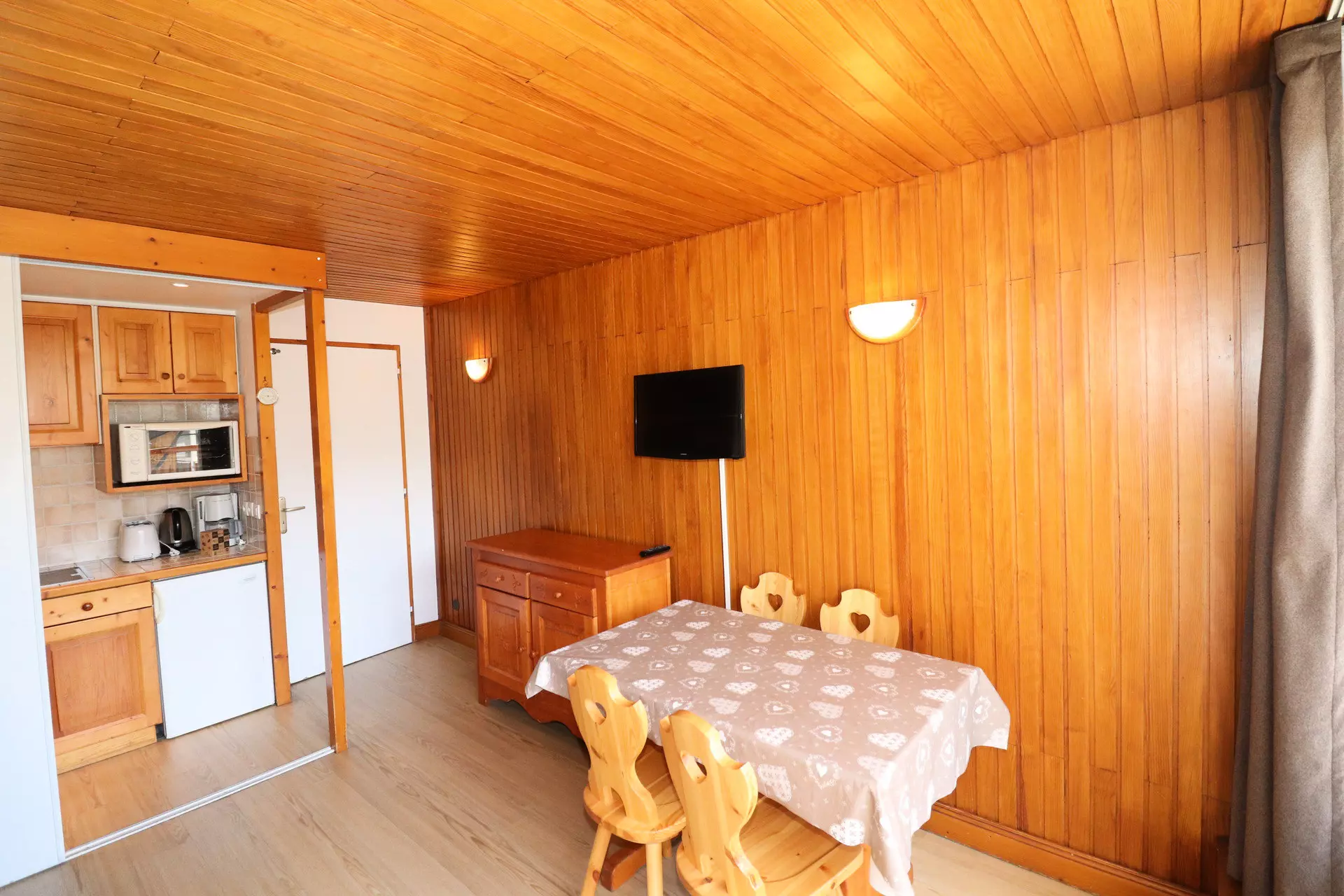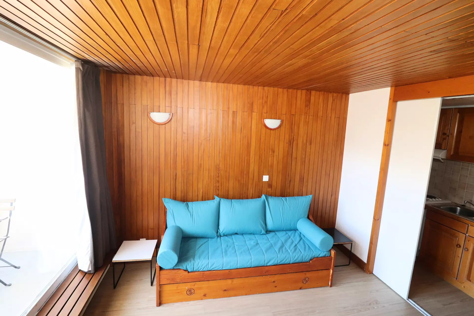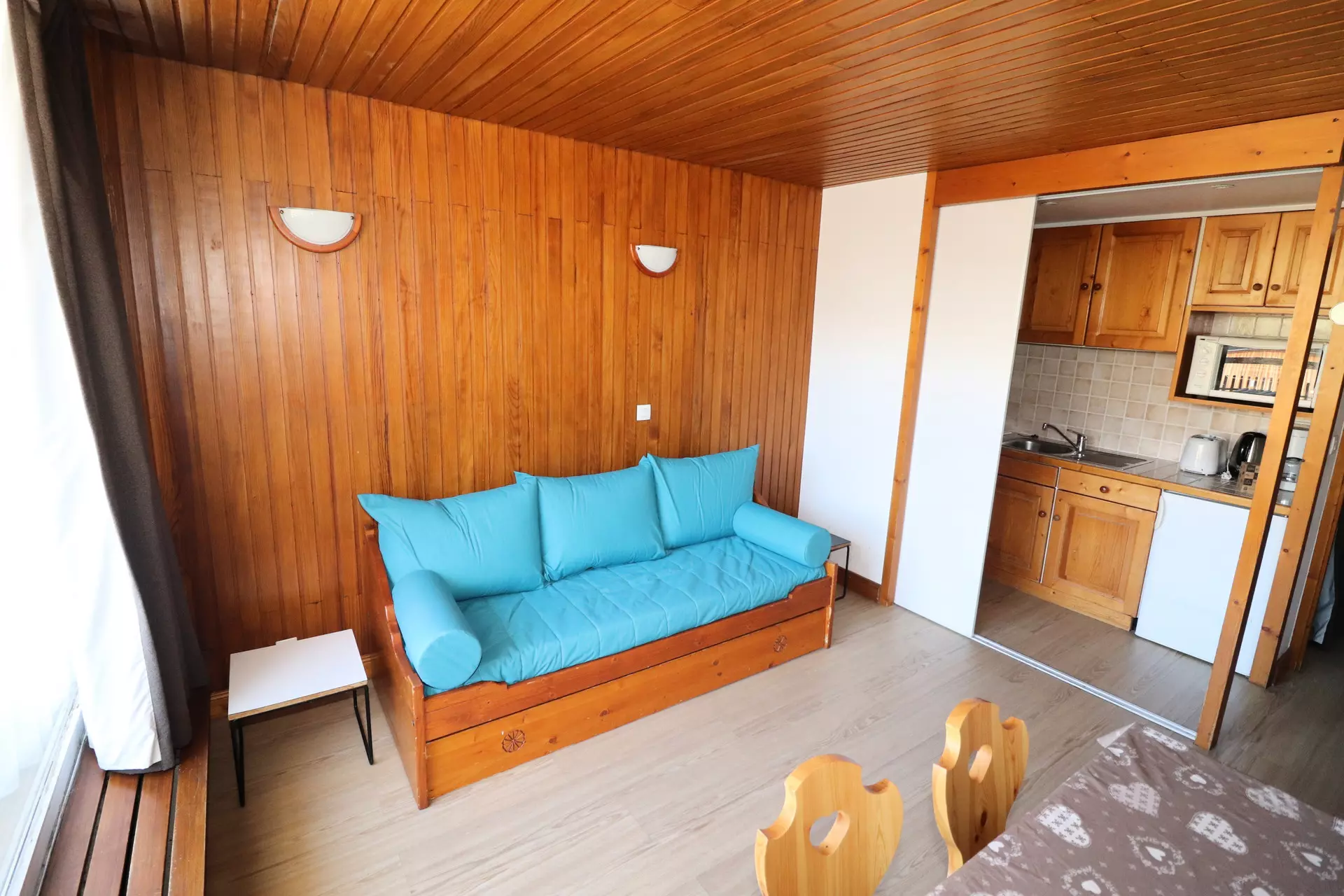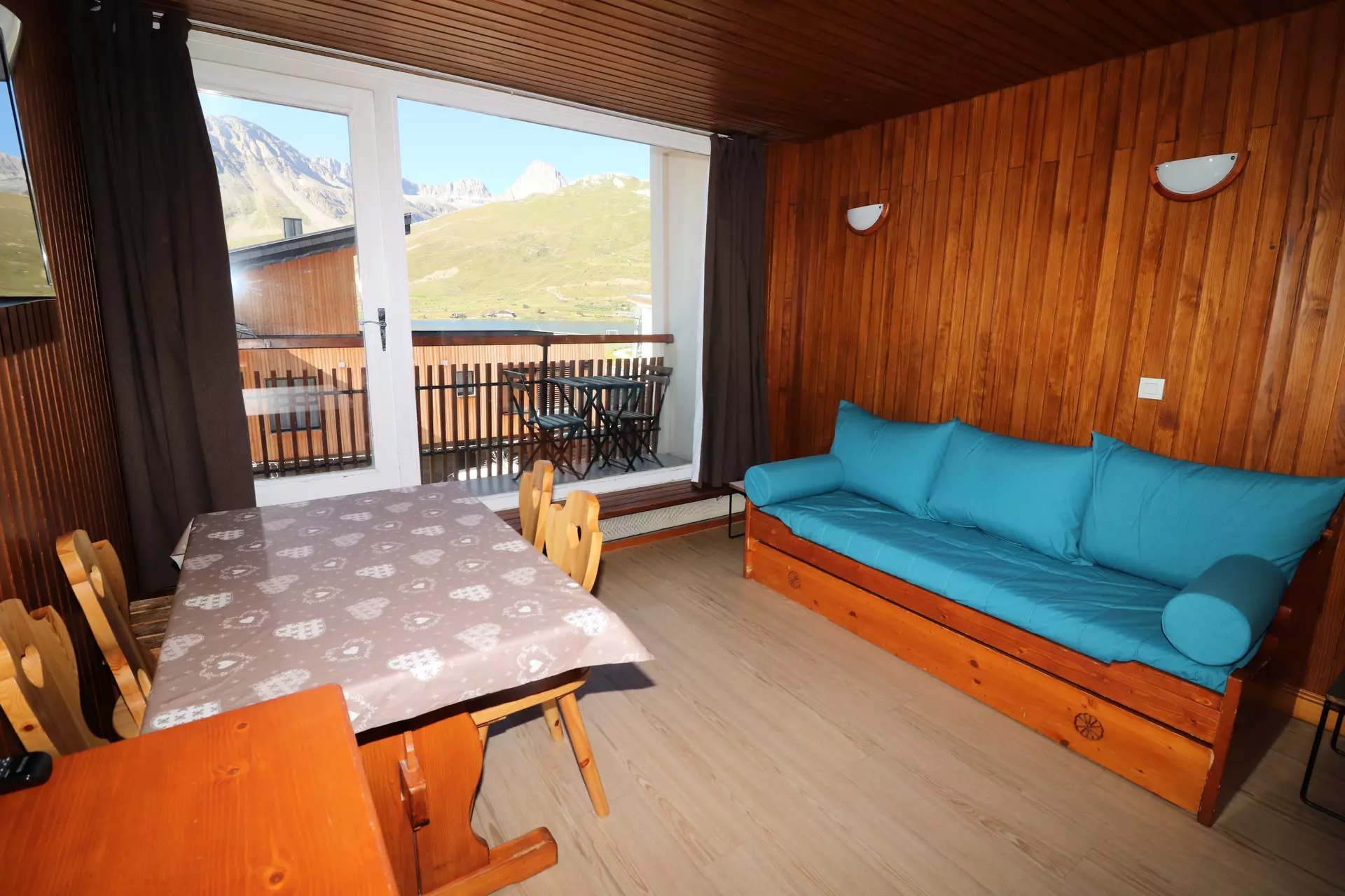 This spacious 31m² studio cabin sleeps 4 and is located on the 2nd floor (without elevator) of the "Les Hauts Lieux" residence in the heart of Tignes Le Lac. The apartment is located opposite the snow front and ski schools.