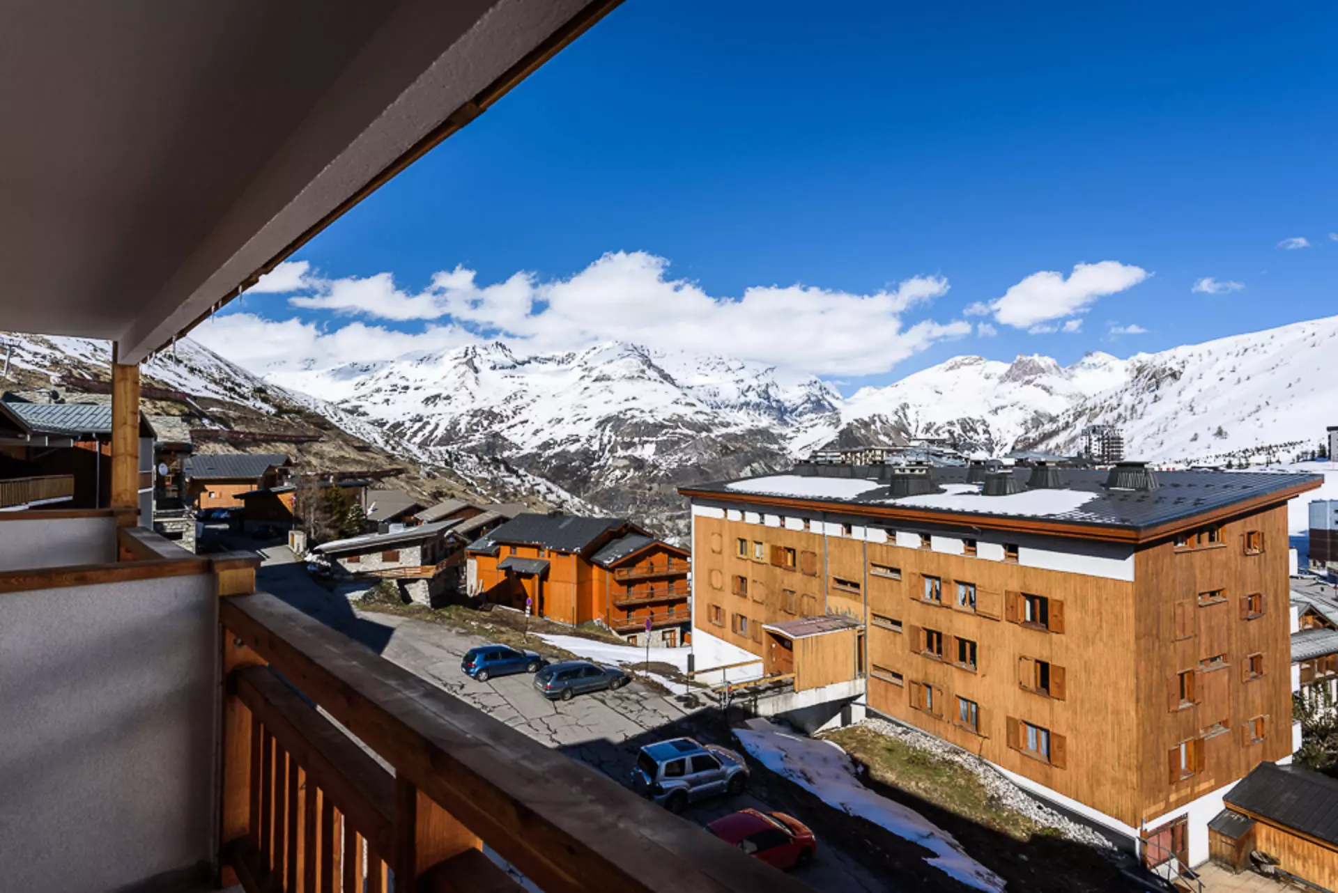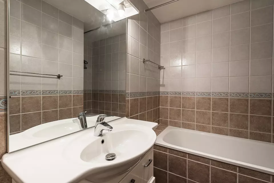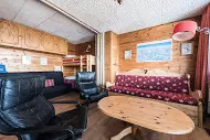 Large 32m² cabin studio equipped for 4 people and located on the 4th floor with elevator of the residence "Grandes Balmes I", in Tignes Le Lac - Les Almes. East exposure with balcony.