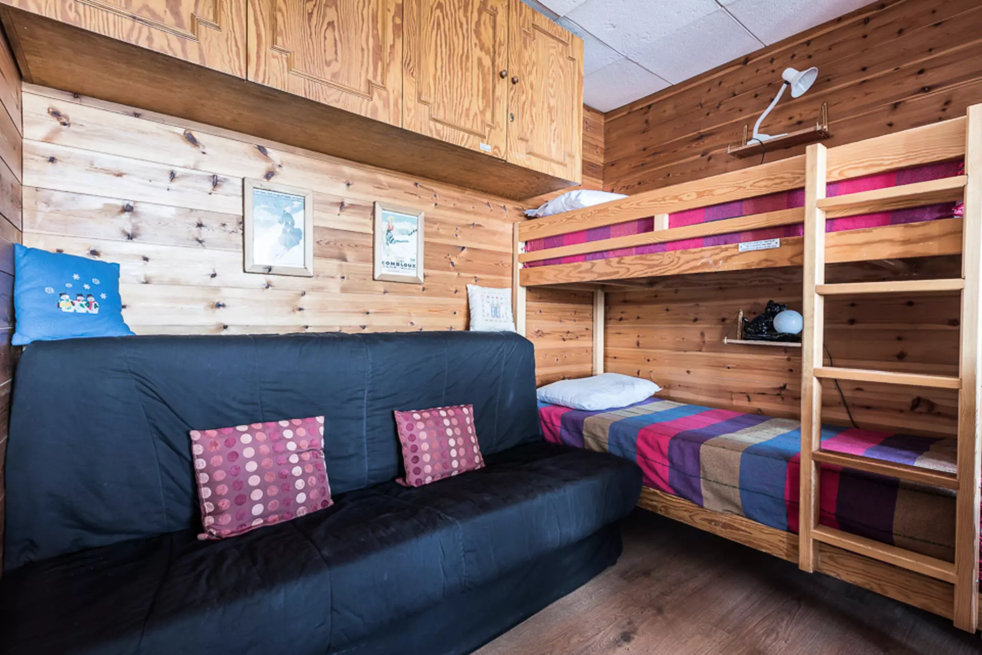Alcove with removable partition in the living room with a bunk bed (2 single beds)