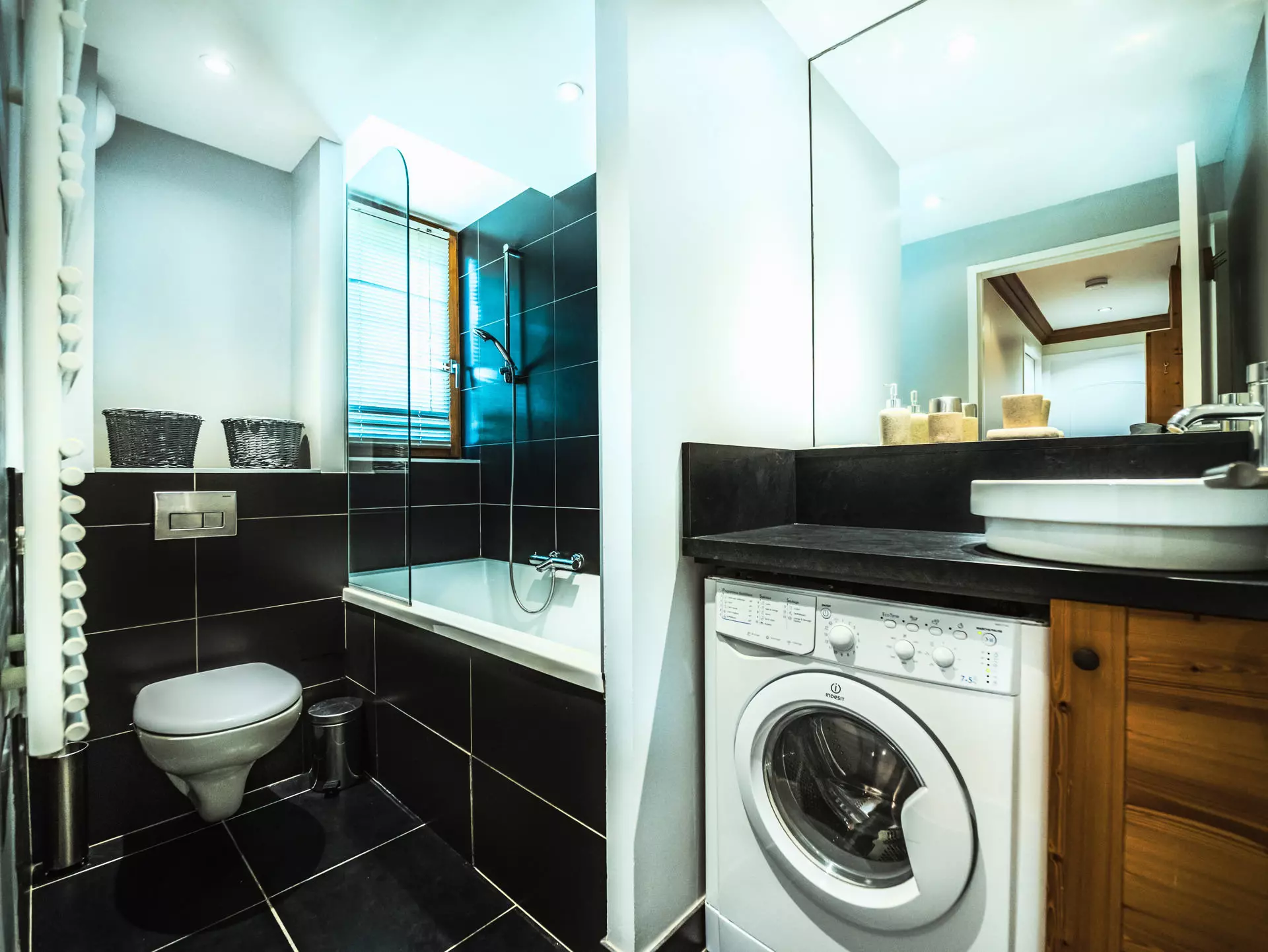 Bathroom with WC and washing machine.