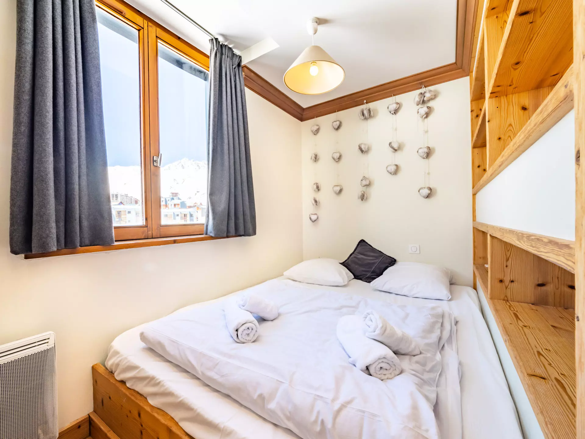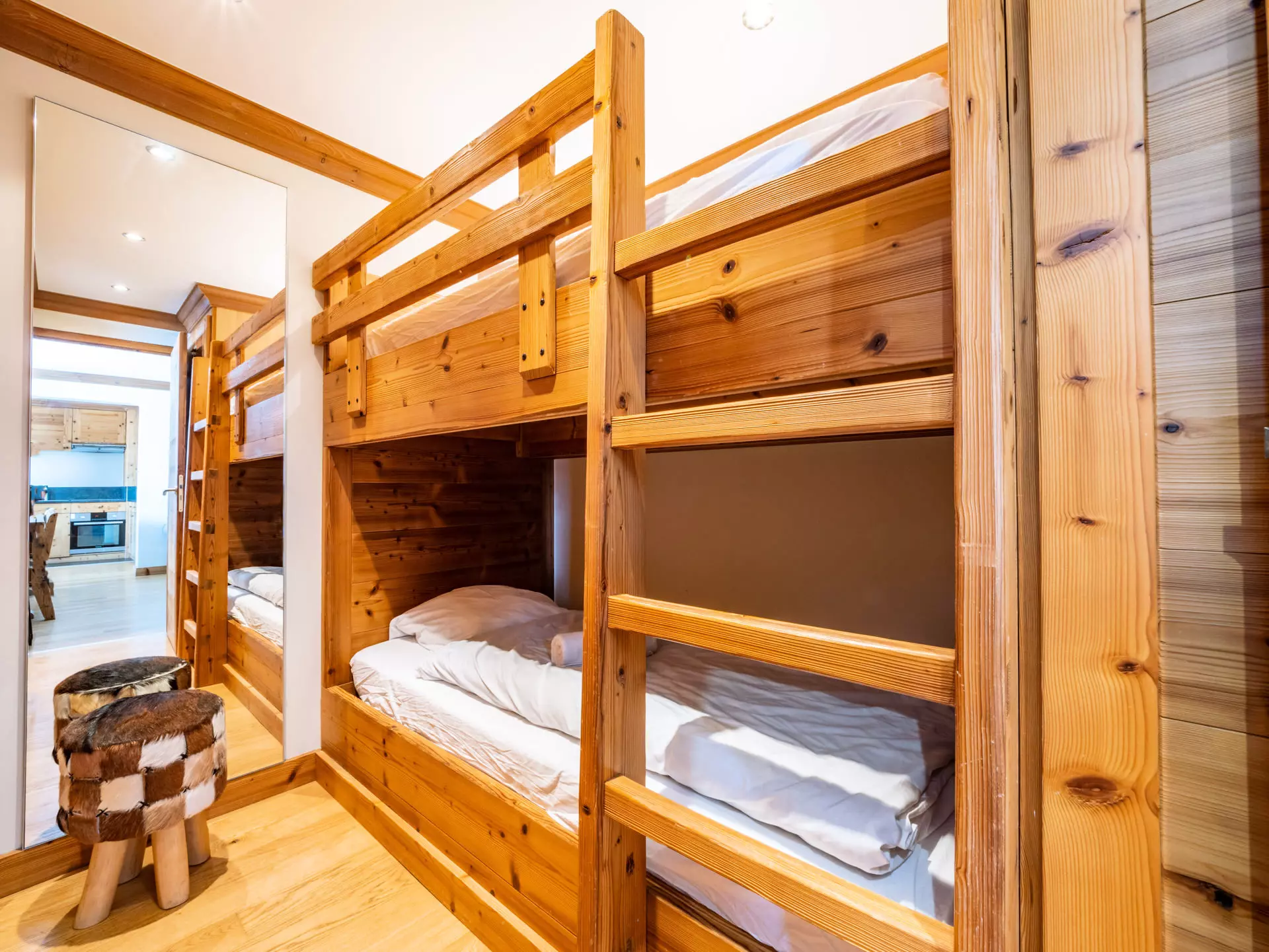 Bedroom No. 3: 2 spaces separated by a door with storage: a double bed AND a space with a bunk bed (2 single beds)