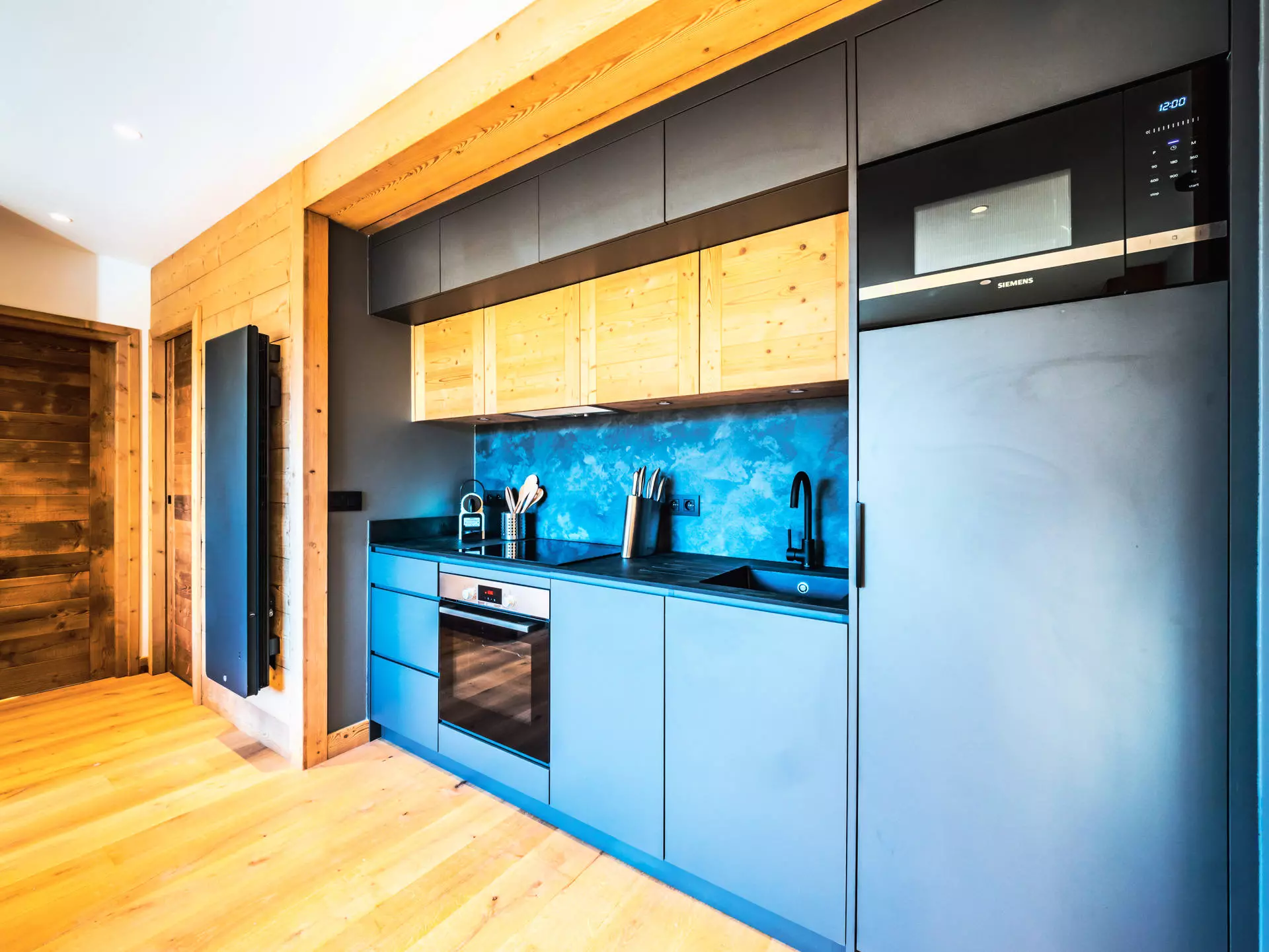 Open kitchen equipped with an oven, microwave, dishwasher and induction hob