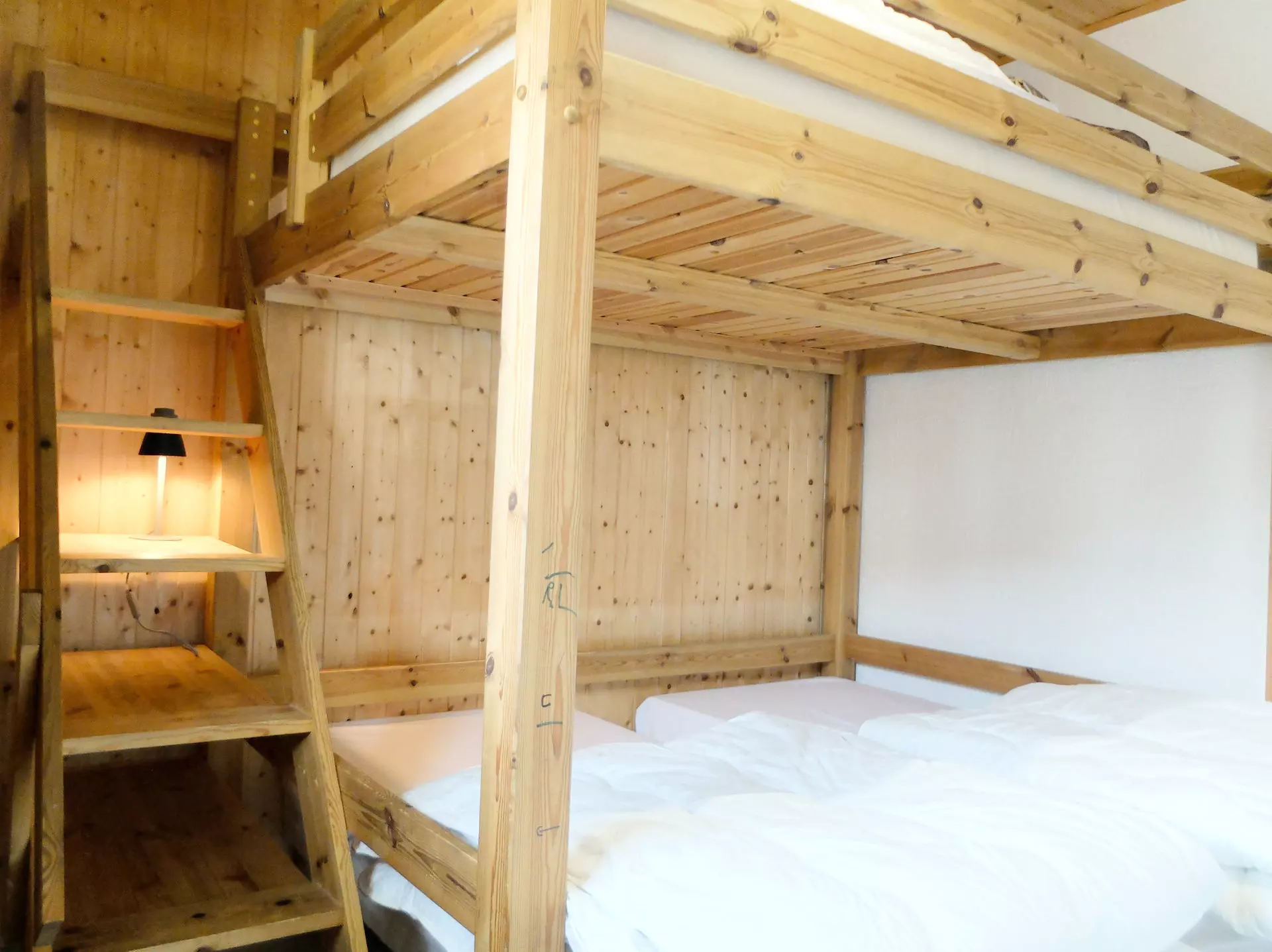 Bedroom No. 2: a double bed on the mezzanine and two single beds downstairs