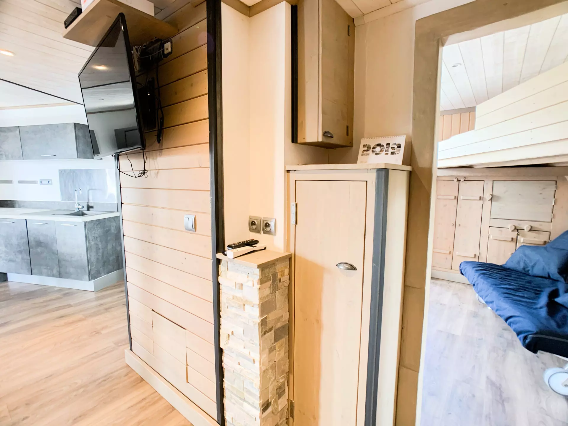 Bedroom with sofa bed (double bed) and a double bed on the mezzanine - TV