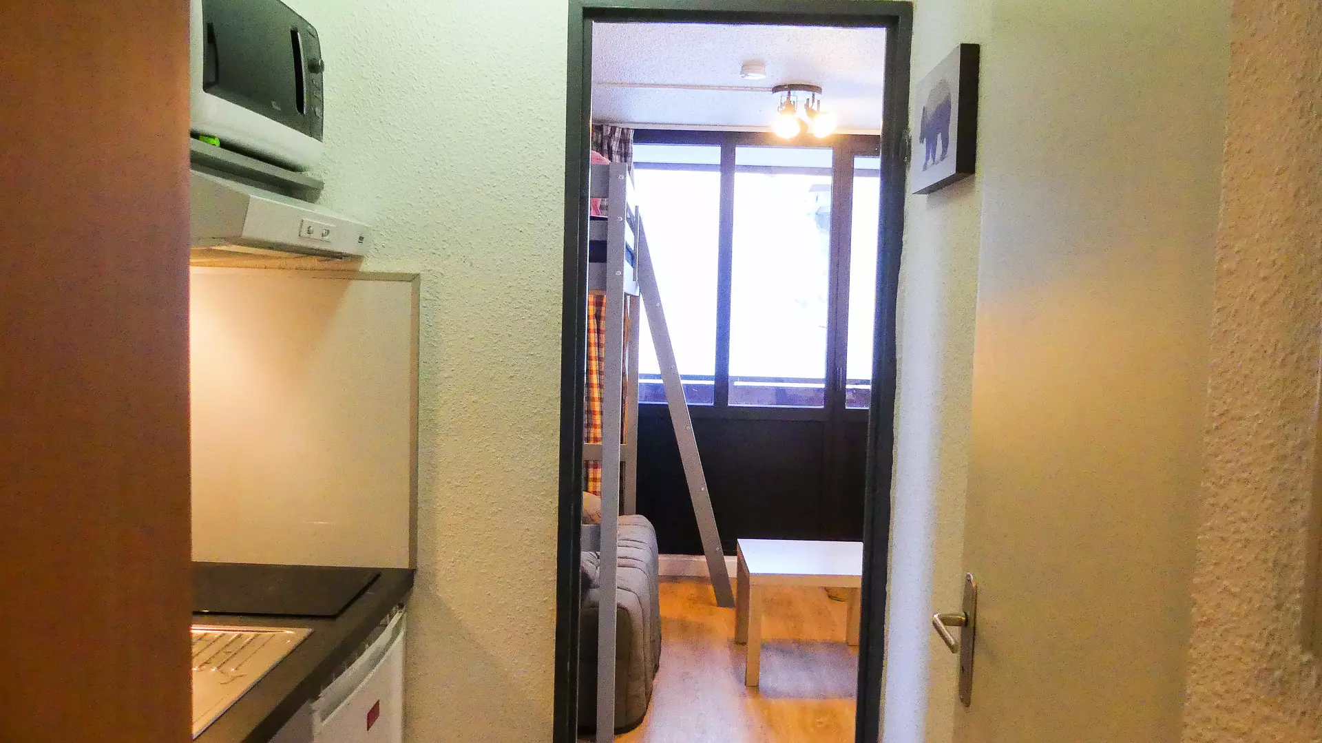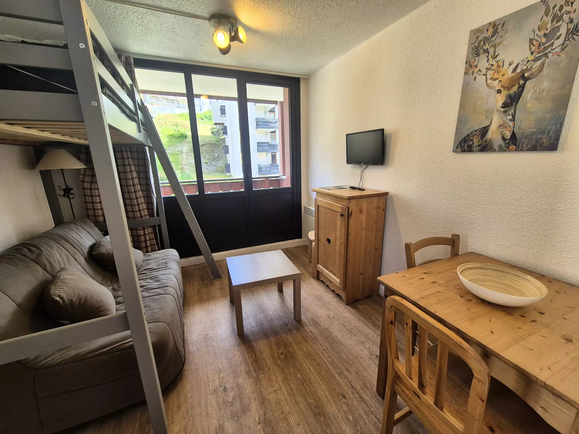 15m² studio that can accommodate 3 people and is located in the "Le Rond Point des Pistes A" residence in Tignes Val Claret. Ski-in ski-out