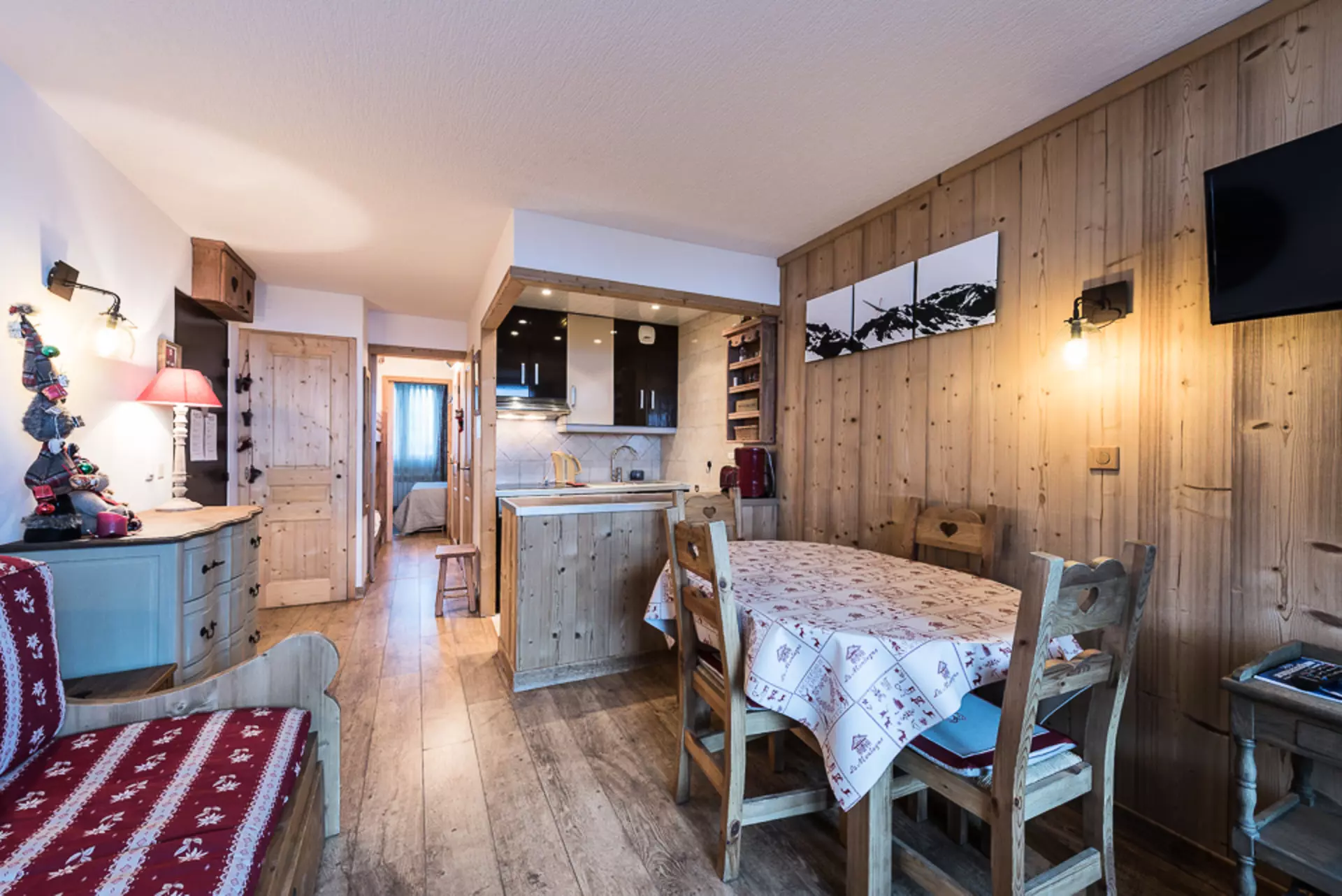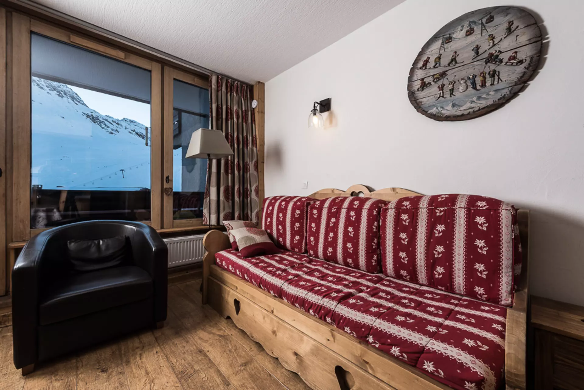 Beautiful renovated 36m2 2-room apartment equipped for 6 people and located on the 1st floor with elevator in the residence "Les Grandes Platières II" in the center of Tignes Val Claret. Close to shops, slopes and ski schools.