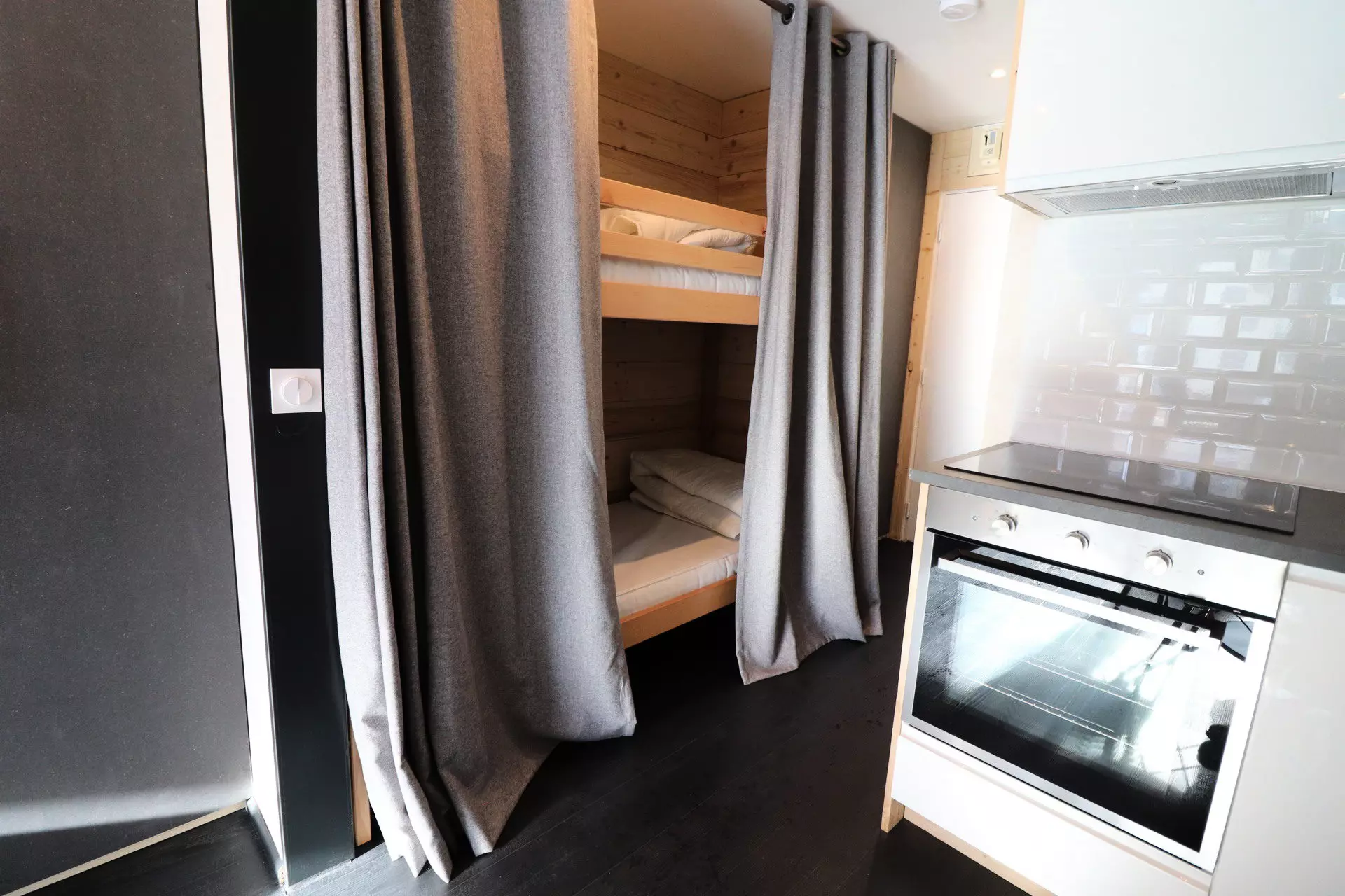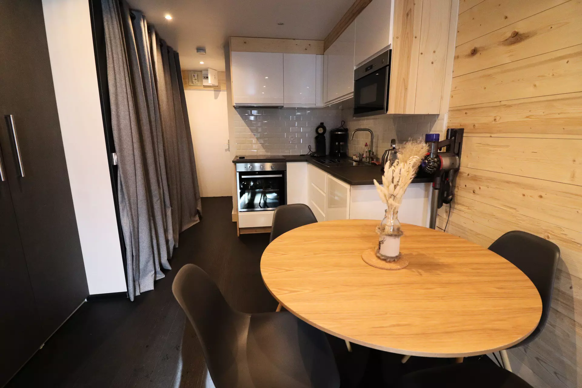 Fully renovated 24m² studio equipped for 4 people and located on the 4th floor with elevator of the residence "Le Grand Tichot A", in the center of Tignes Val Claret.