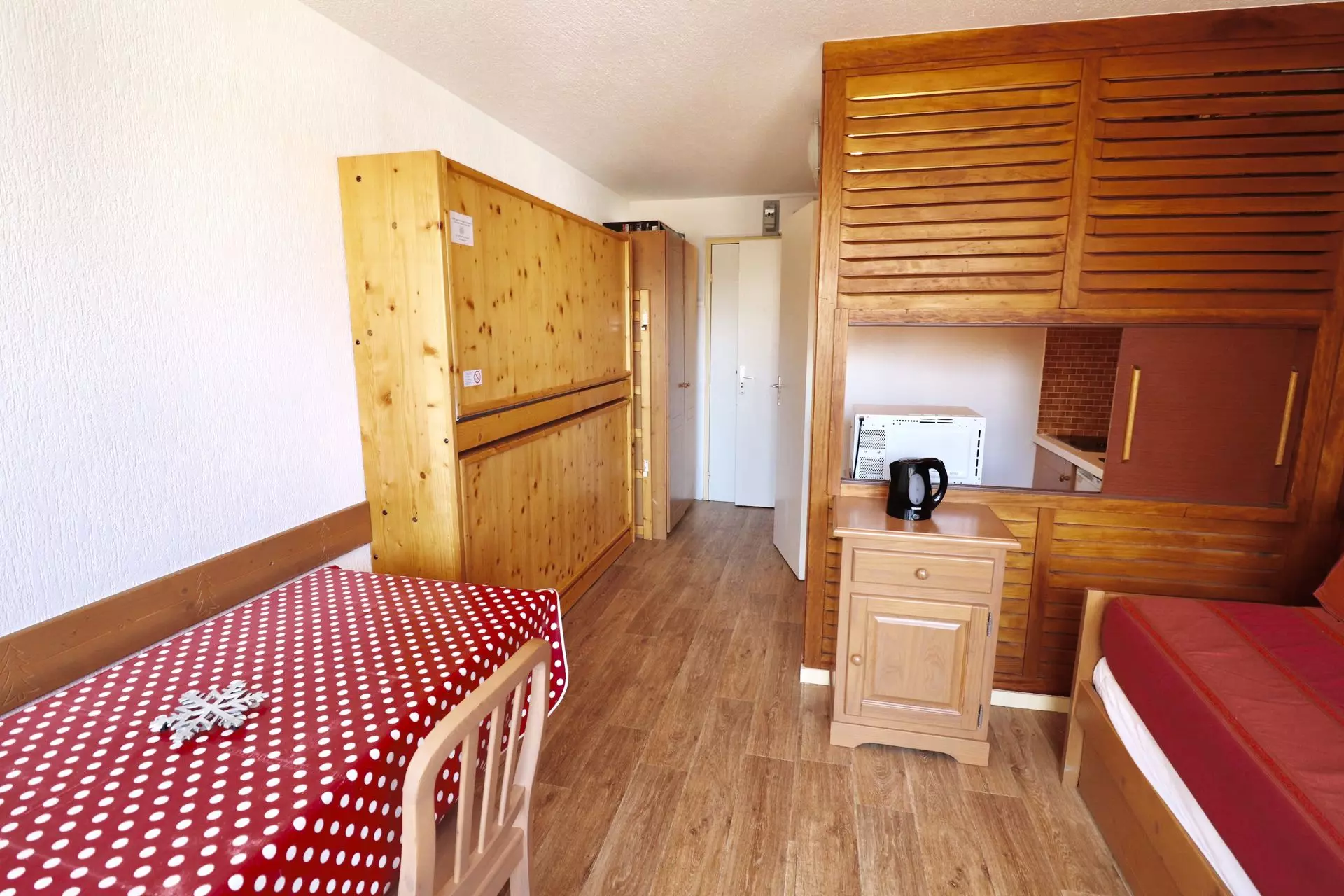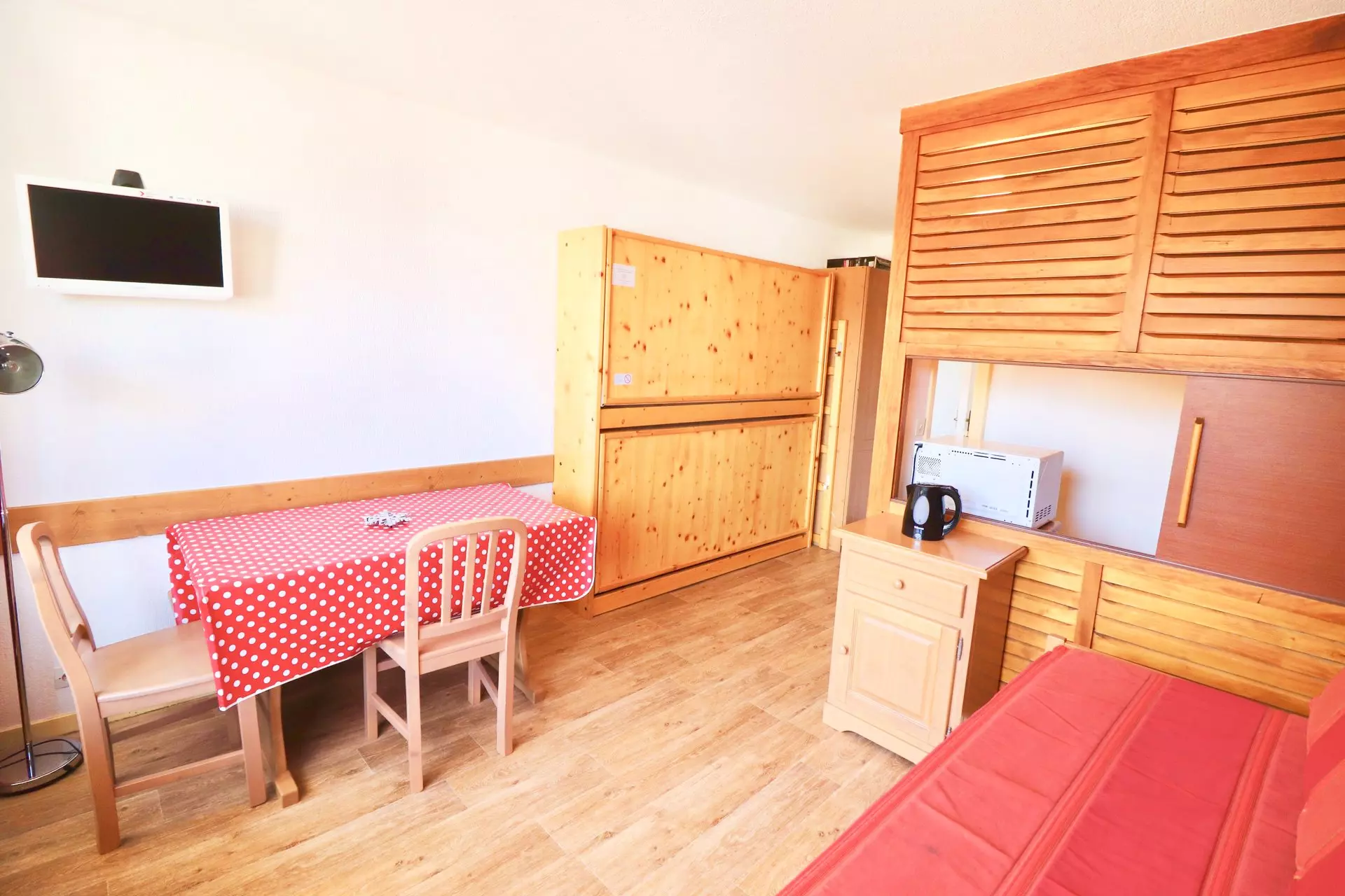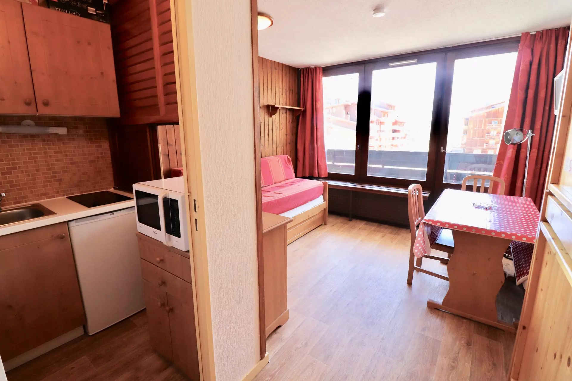 This 18m² studio apartment sleeps 4 and is located on the 5th floor of the "Les Platières" residence with elevator access in the heart of Tignes Val Claret. Close to shops, slopes, and ski schools.