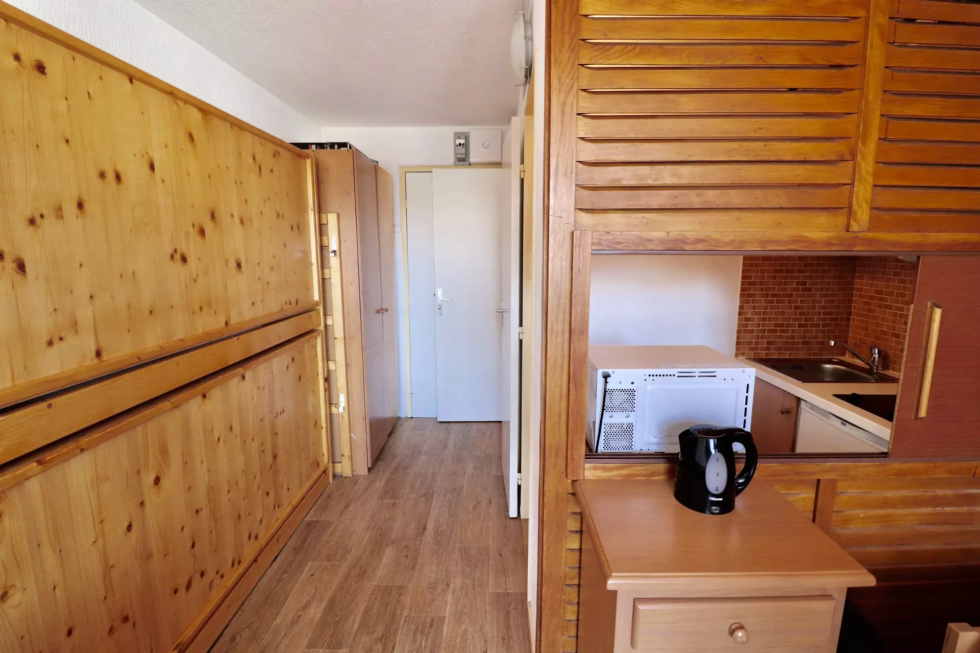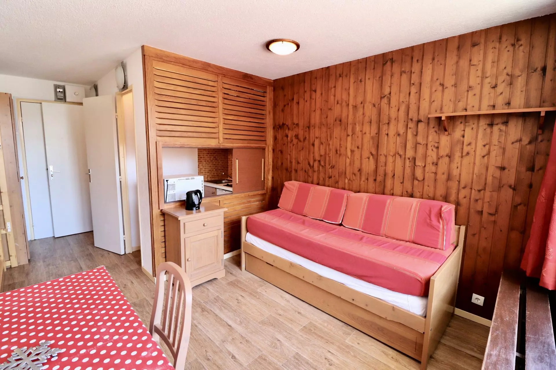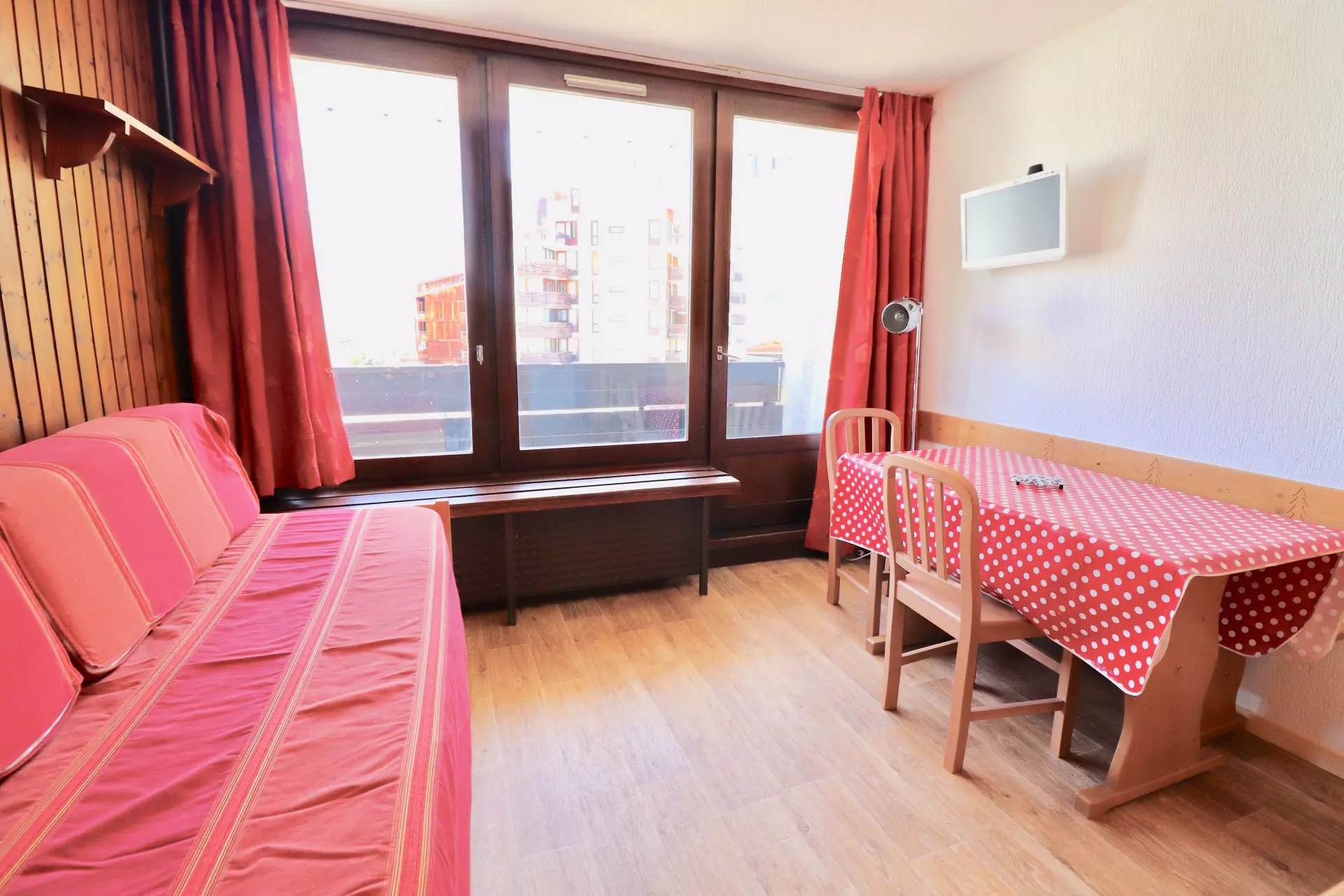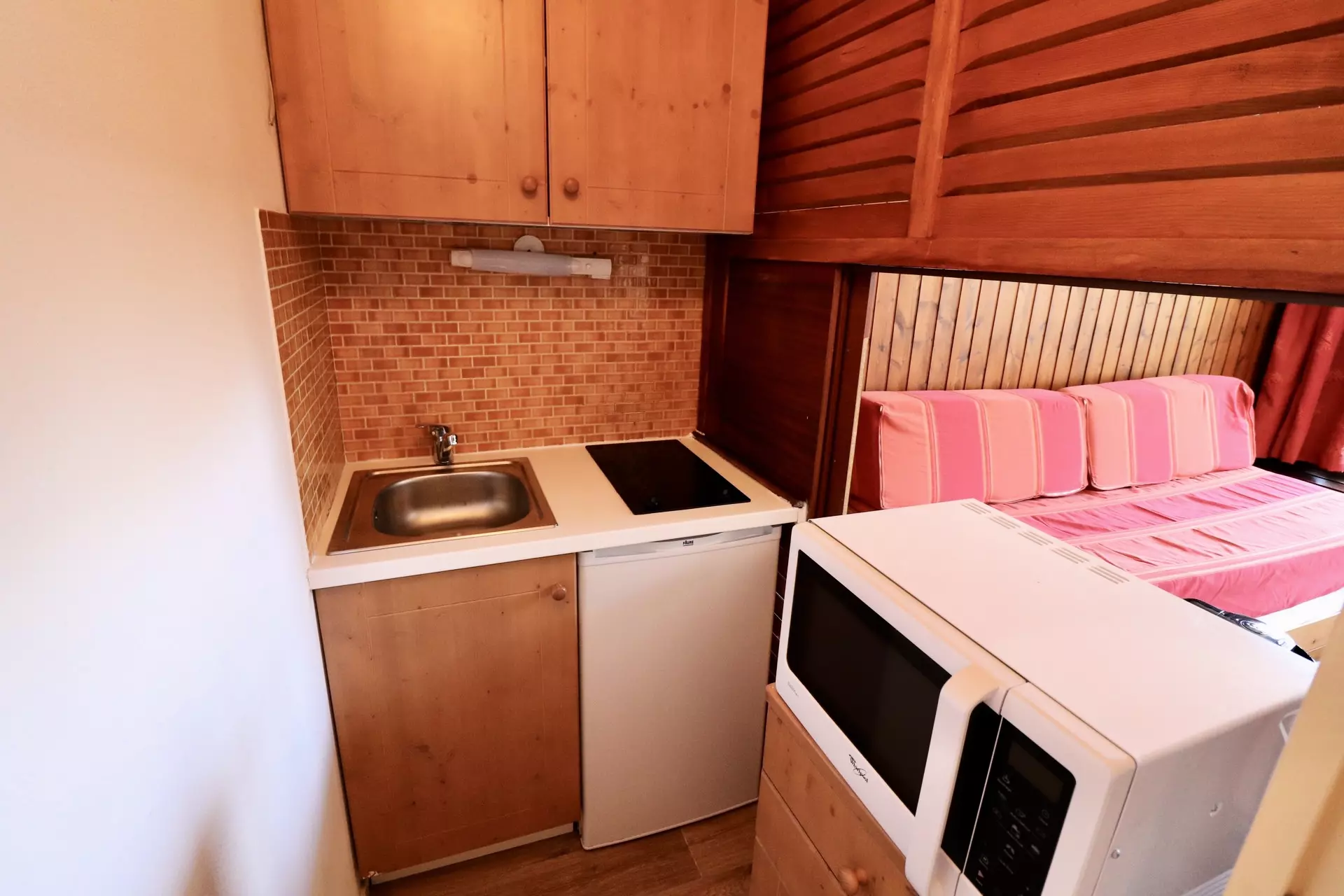 This 18m² studio apartment sleeps 4 and is located on the 5th floor of the "Les Platières" residence with elevator access in the heart of Tignes Val Claret. Close to shops, slopes, and ski schools.