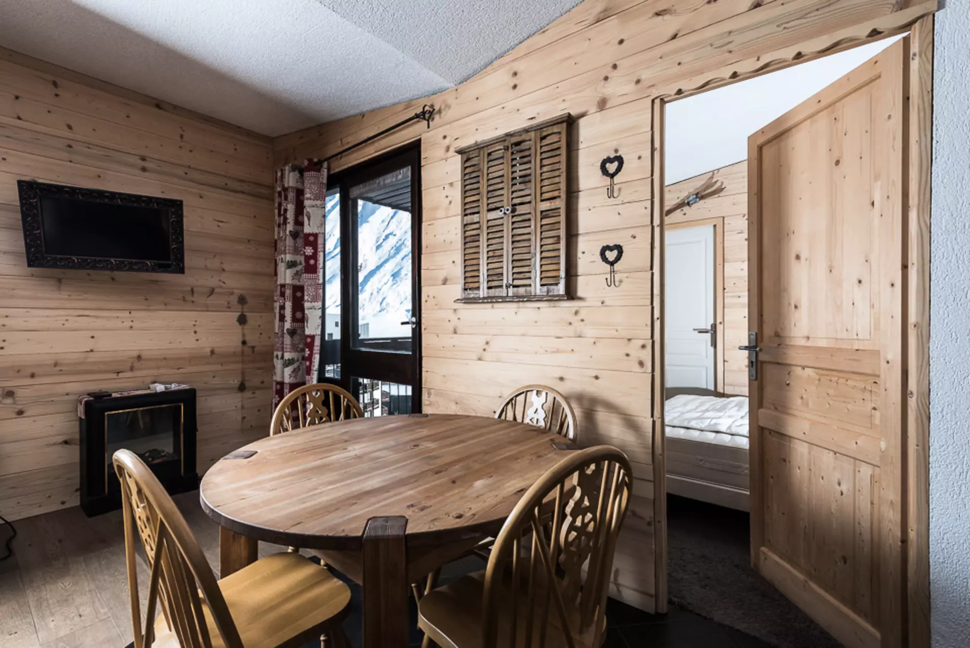 2-room apartment of 35m² equipped for 5 people and located on the 12th floor with elevator of the residence "Le Schuss", at the entrance to Tignes Val Claret.