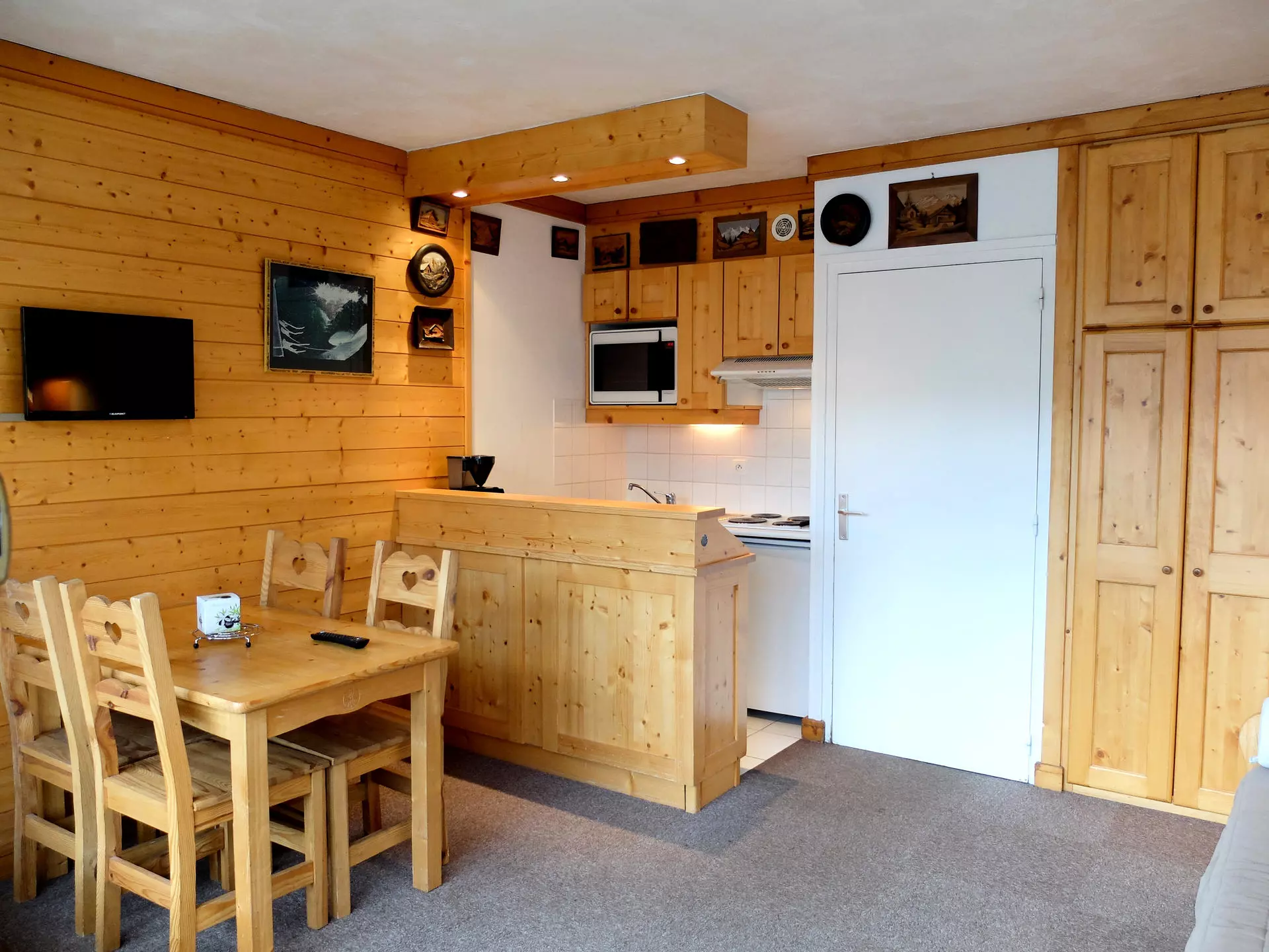 This 28m² studio, equipped for 4 people, is located on the 4th floor (with elevator) of the "Le Bec Rouge" residence in Tignes Le Lac. Ski-in ski-out access.