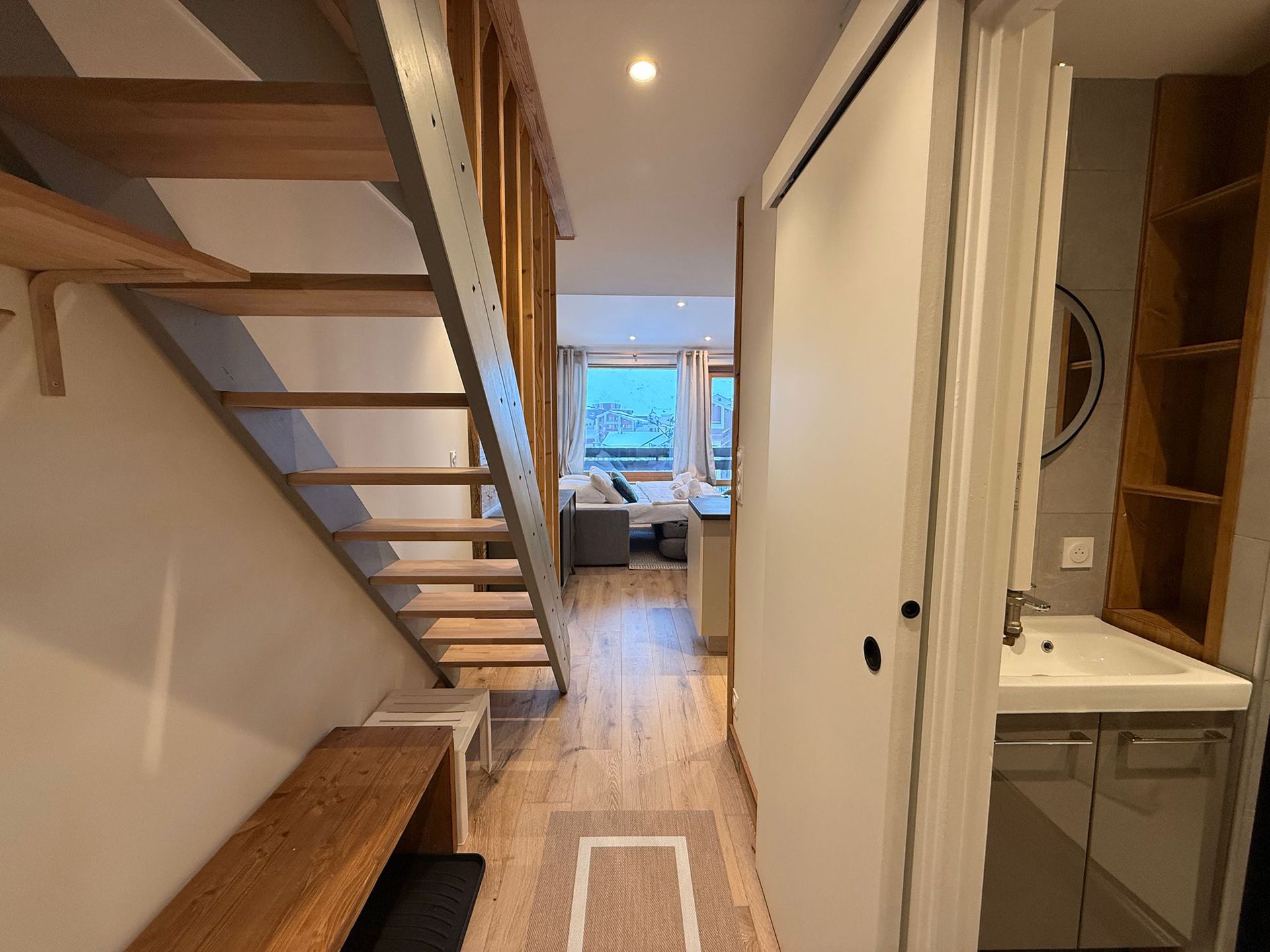 This renovated 45 m² flat is located in the Hauts du Val Claret B3 residence, at the end of the Esplanade des Campanules. Right in the centre of the Val Claret district and virtually ski-in/ski-out, this duplex flat is sure to please.